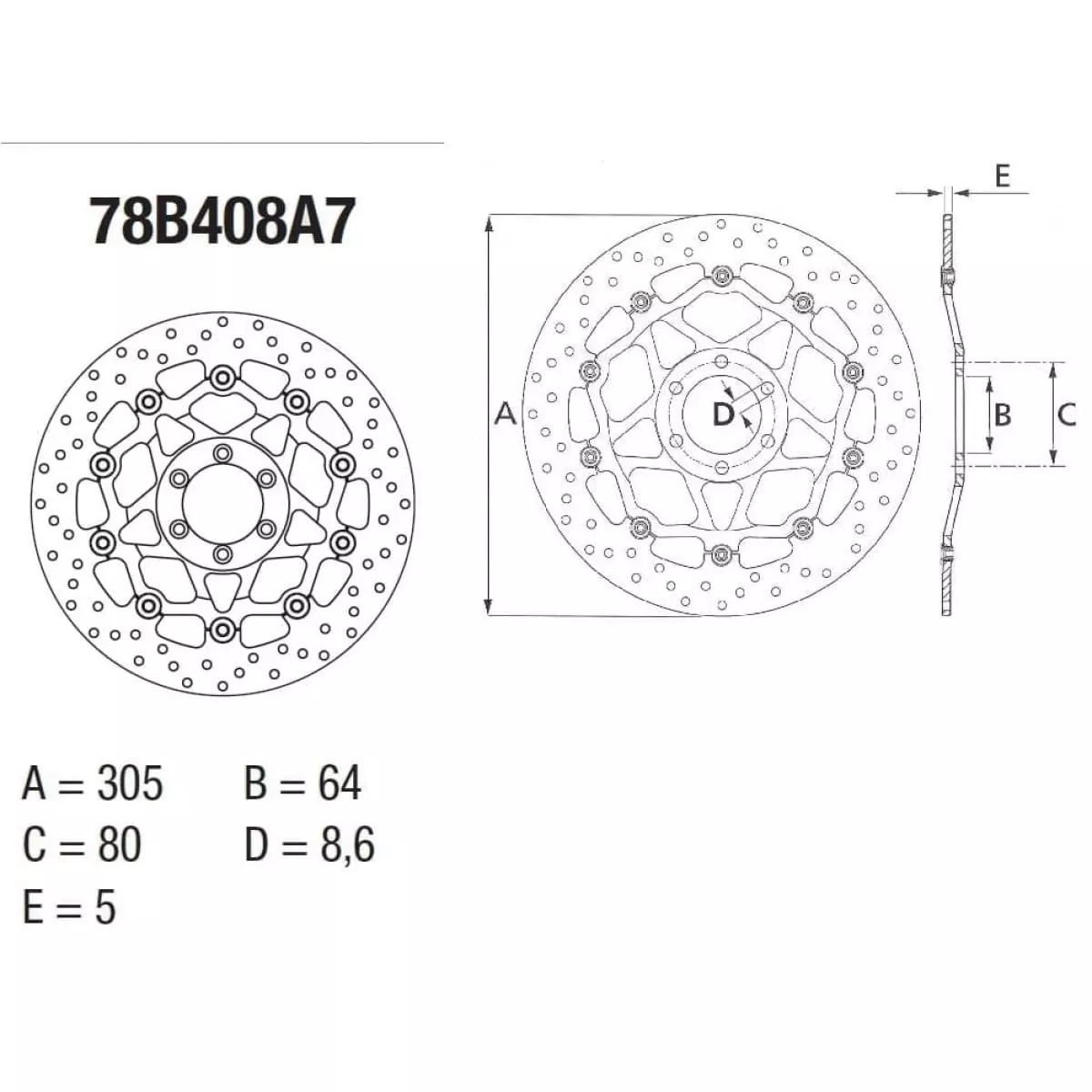 Disque de Frein Avant Brembo Serie Oro rond semi-flottant type 78B408A7