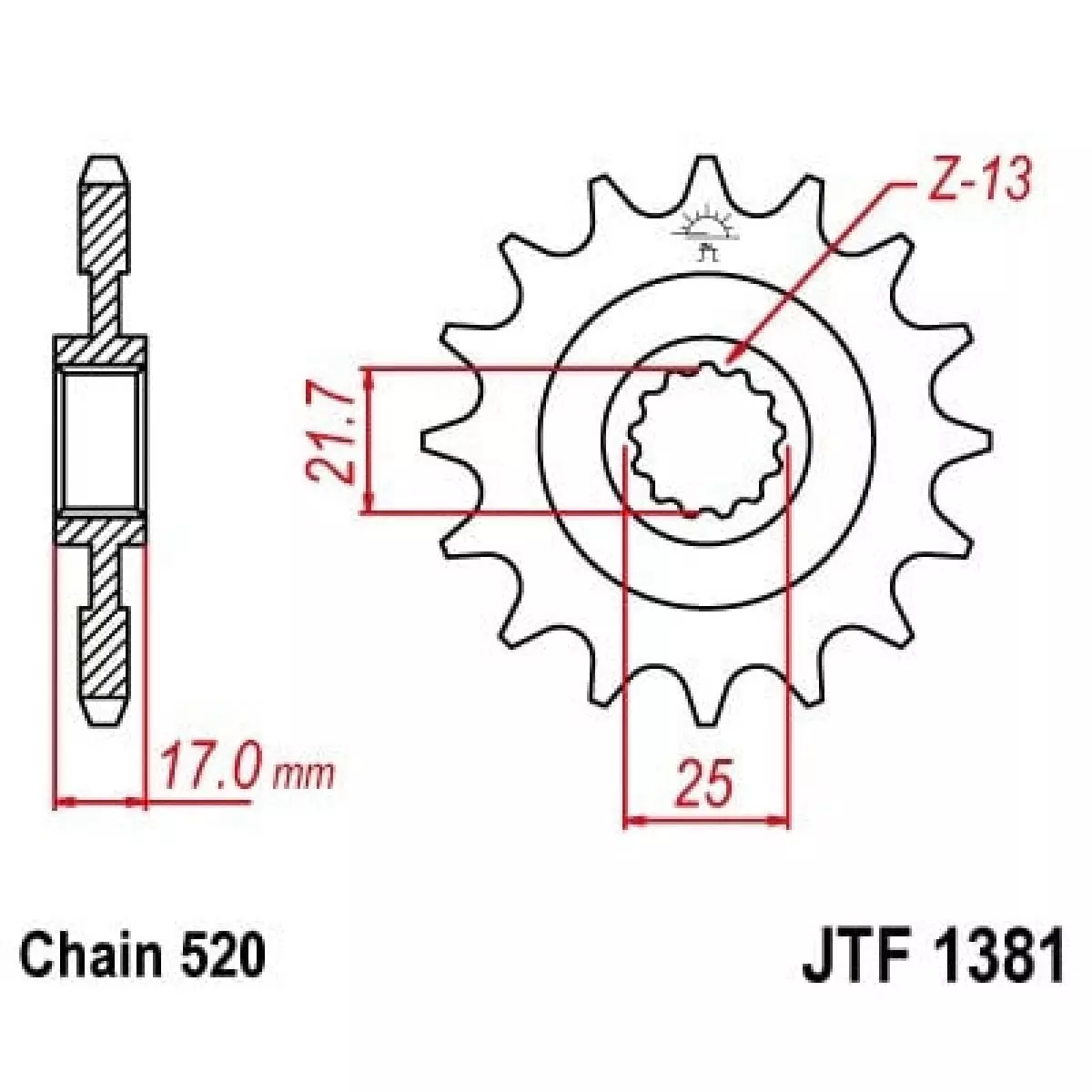 Pignon JT Sprockets 15 Dents Acier standard Pas 520 Type 1381 Honda CB500F
