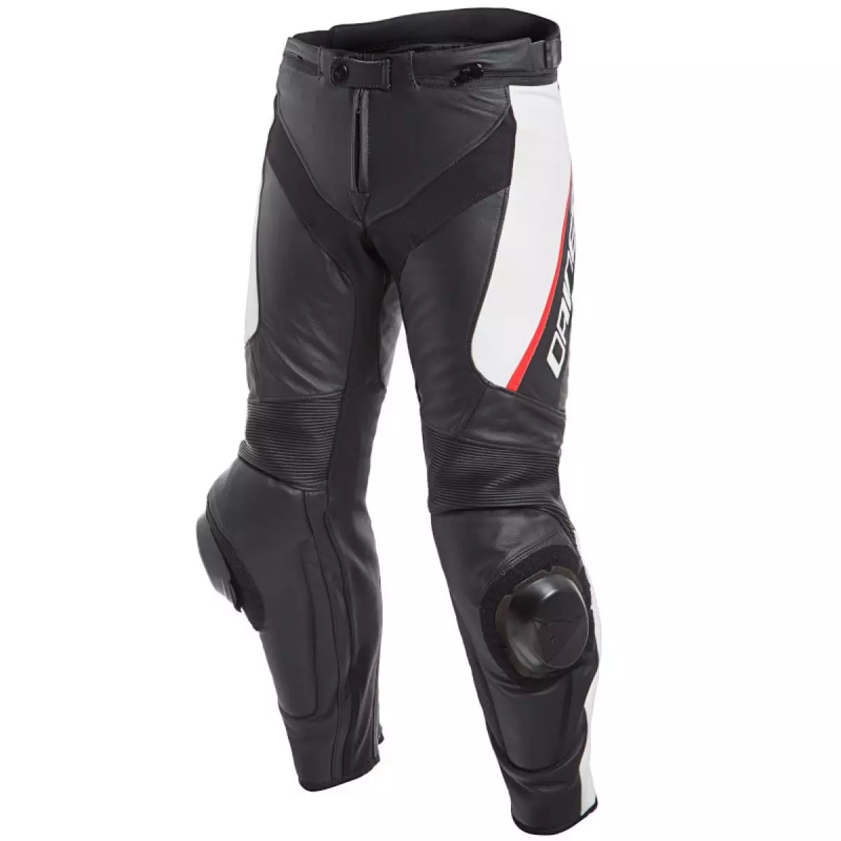 Dainese nous propose son pantalon racing pour homme, le Delta 3 en coloris noir, blanc et rouge (858).