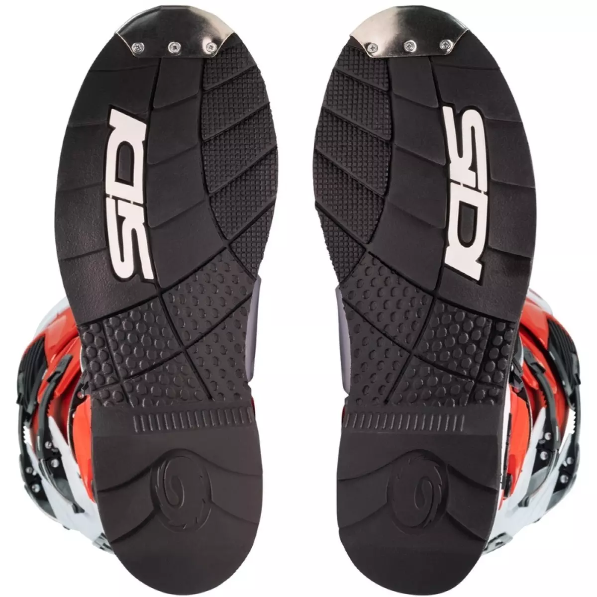 Grâce à son fermoir à quatre leviers, avec bracelet cranté et clip micrométrique à mémoire, les bottes offrent une fermeture sécurisée, tout en permettant un bon maintien du pied et tout en s'adaptant à la position du pilote. Concernant la sécurité, la botte Sidi Crossfire 3 dispose d'un talon moulé en PU, d'une protection sur le métatarse, d'un insert en nylon rigide protégeant l'intérieur de la botte en cas de glissade au niveau du cale-pied (ou du kick) et pour finir, la pointe est totalement recouverte d'une protection en plastique résistant. Le gros plus de ces bottes moto cross : beaucoup des éléments dont elles disposent sont remplaçables.