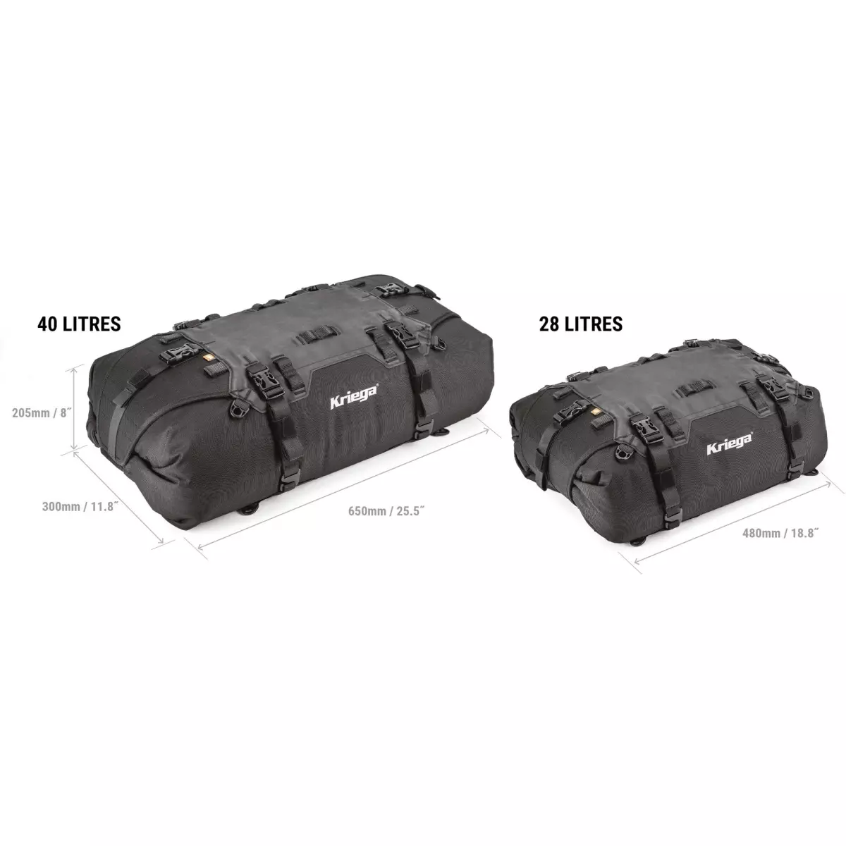 Kriega vous présente sa sacoche moto étanche, la US-40 Rackpack en coloris noir et de capacité 40 litres.