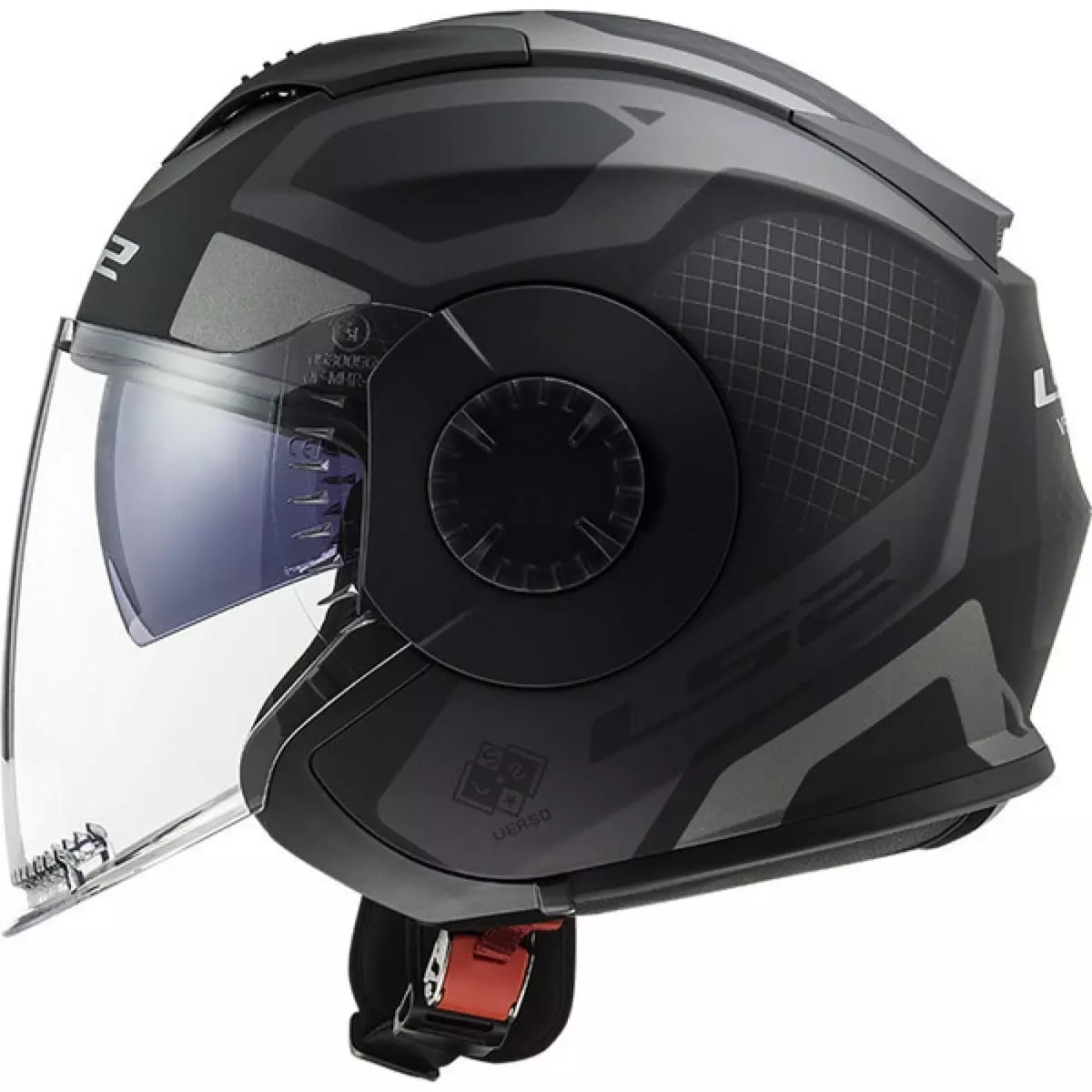 LS2 vous présente son casque jet, le OF570 Verso Marker en coloris noir mat titanium.