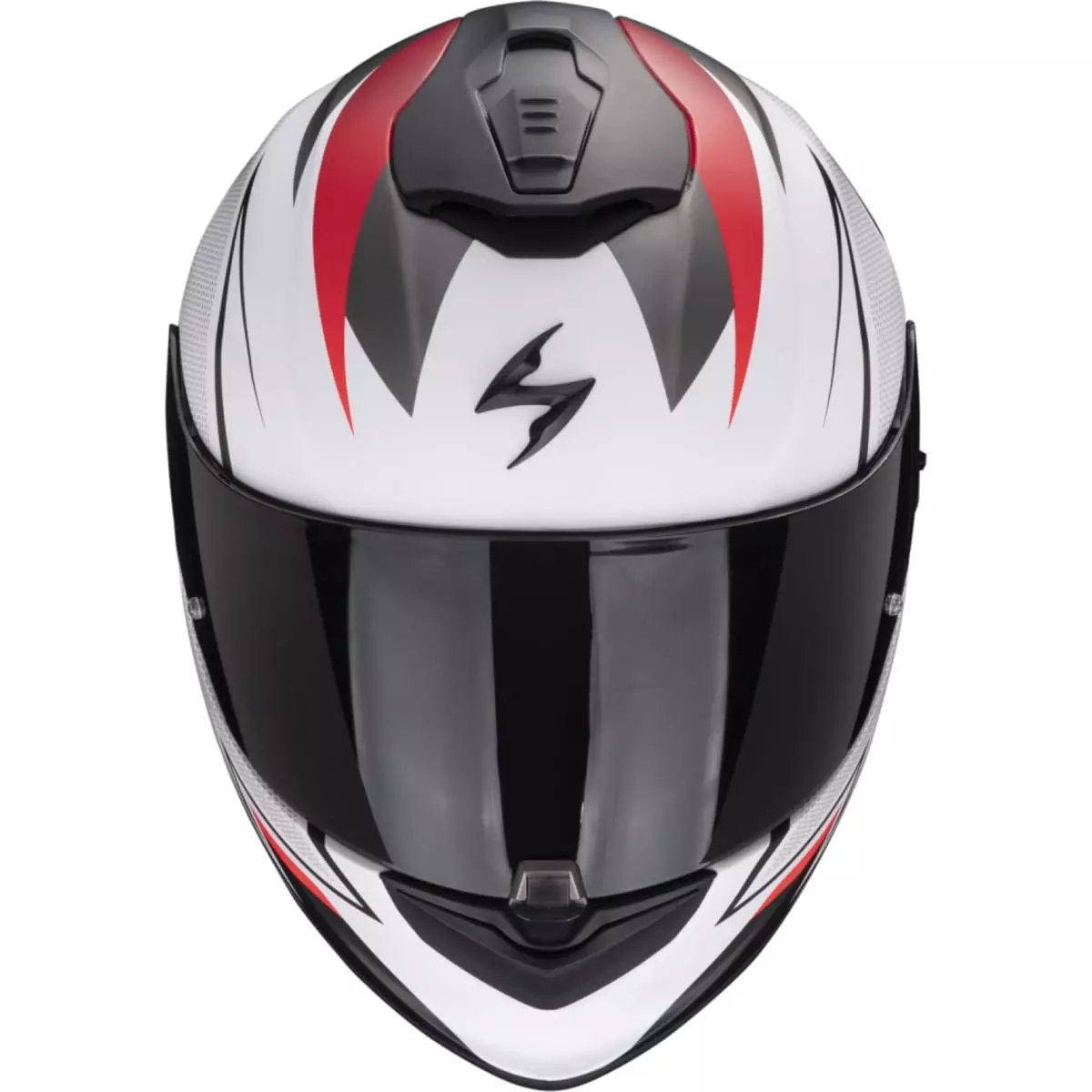 Scorpion vous présente son casque intégral, l'Exo-1400 Evo Air Thelios en coloris blanc mat rouge.