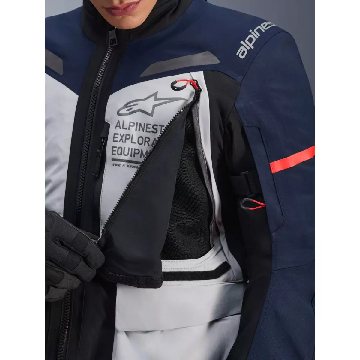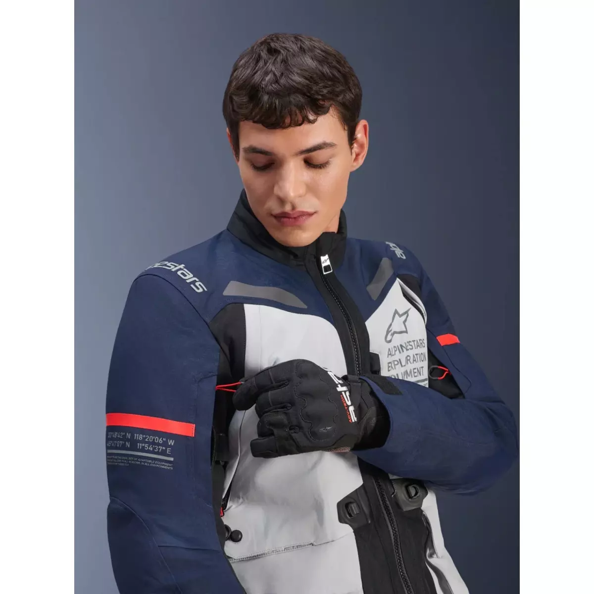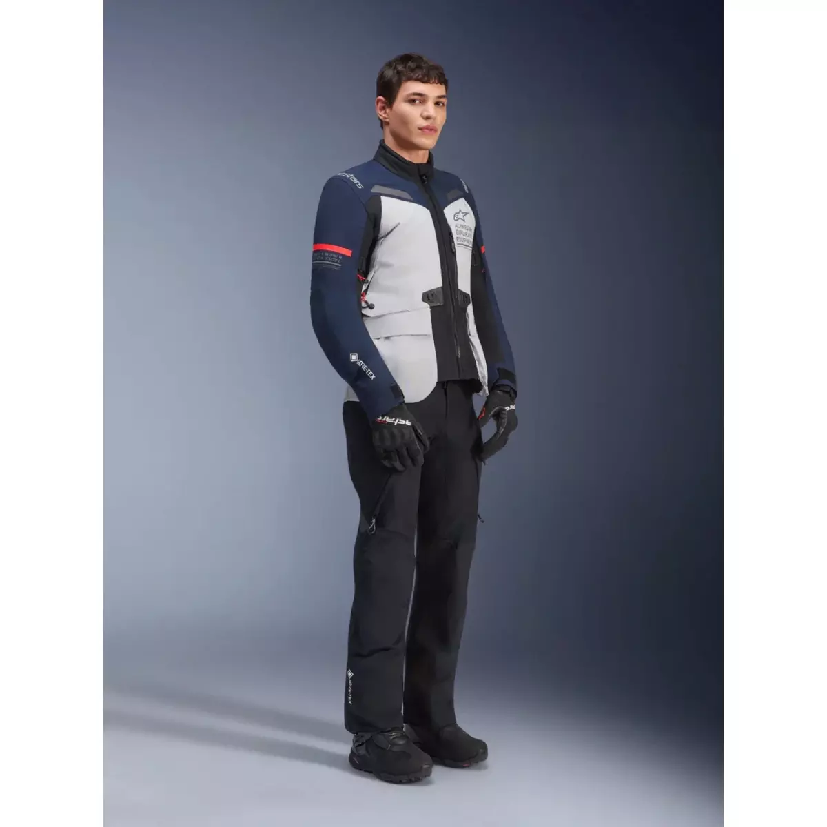 Alpinestars vous présente sa veste moto Adventure, la ST-7 2L Gore-Tex en coloris bleu foncé et gris clair.