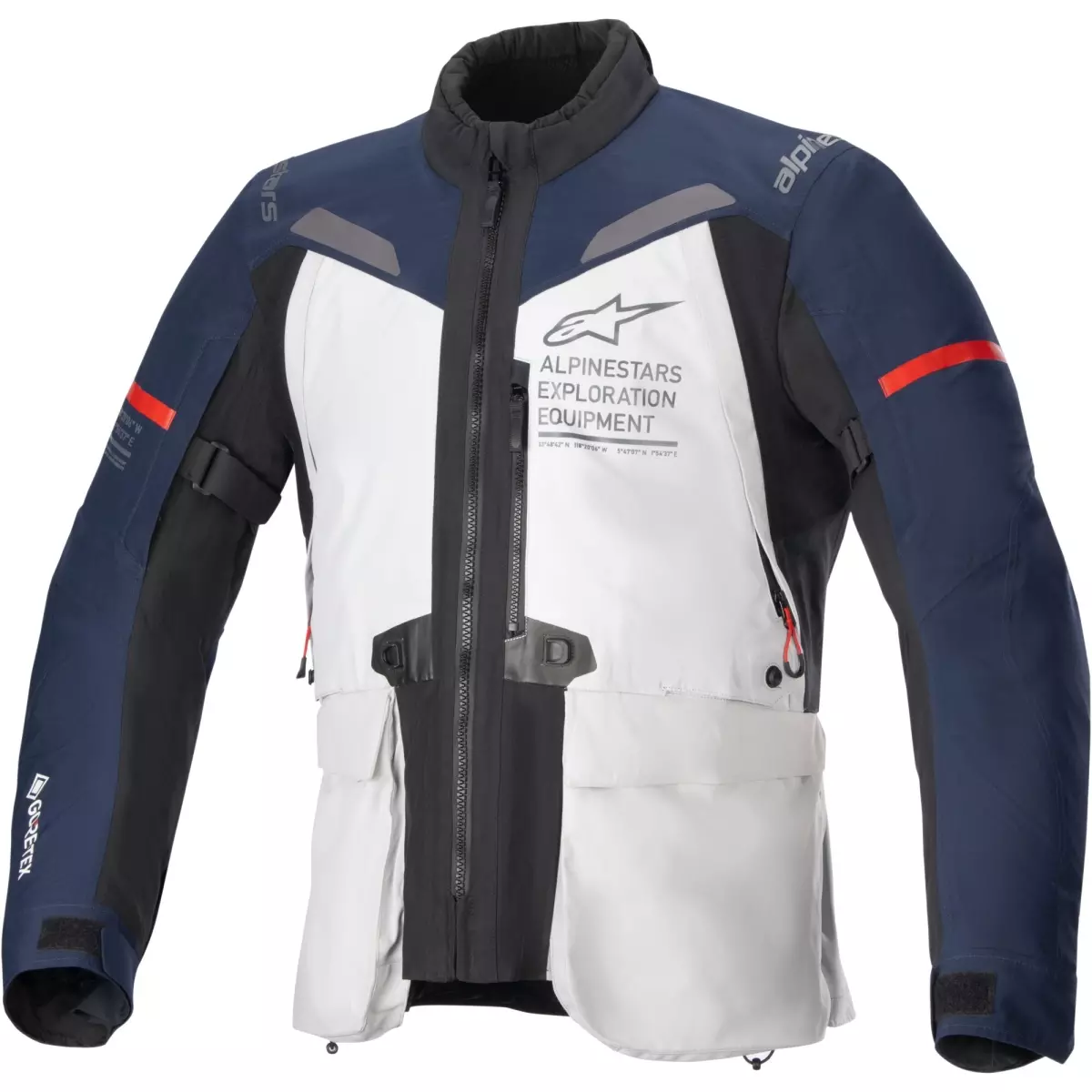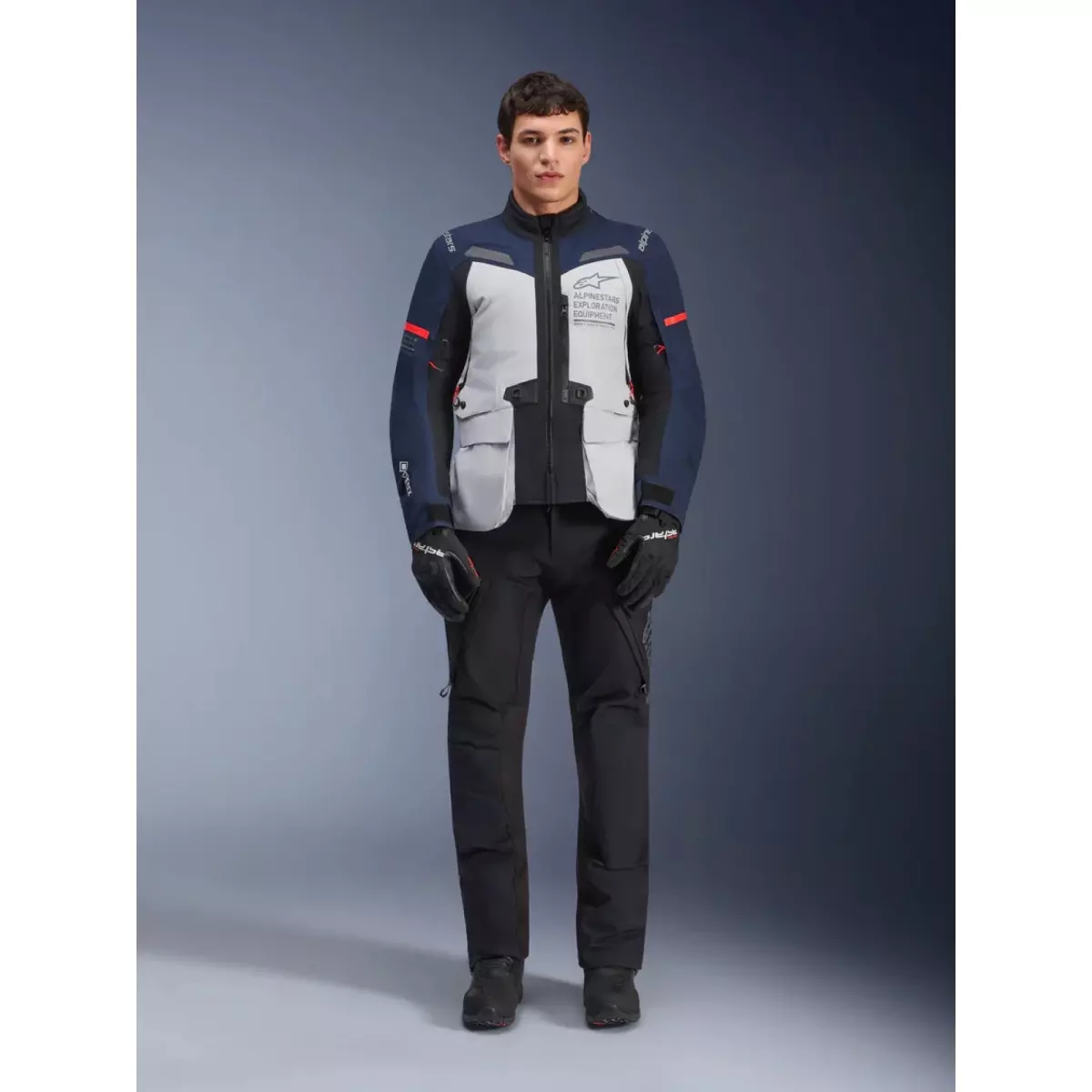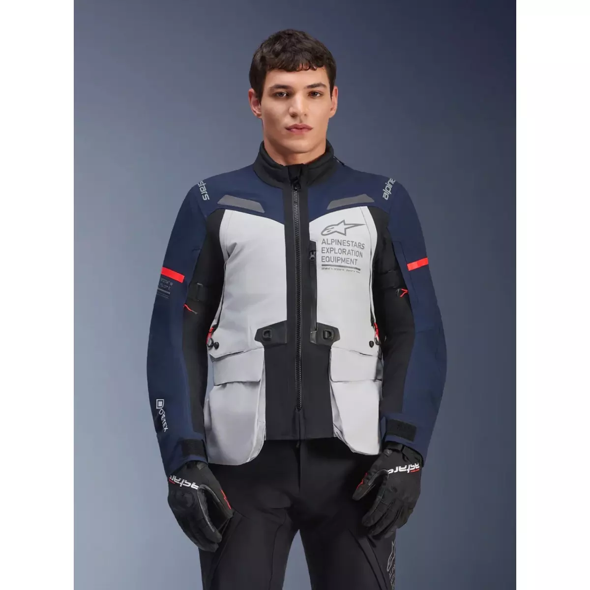 Alpinestars vous présente sa veste moto Adventure, la ST-7 2L Gore-Tex en coloris bleu foncé et gris clair.