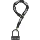 Chaine qui peut se mettre autour d'un point fixe et de mettre le U sur le cadre de la moto, la cheine est vraiment robuste et lourde rien que le fait de la voir fait fuire les voleurs !