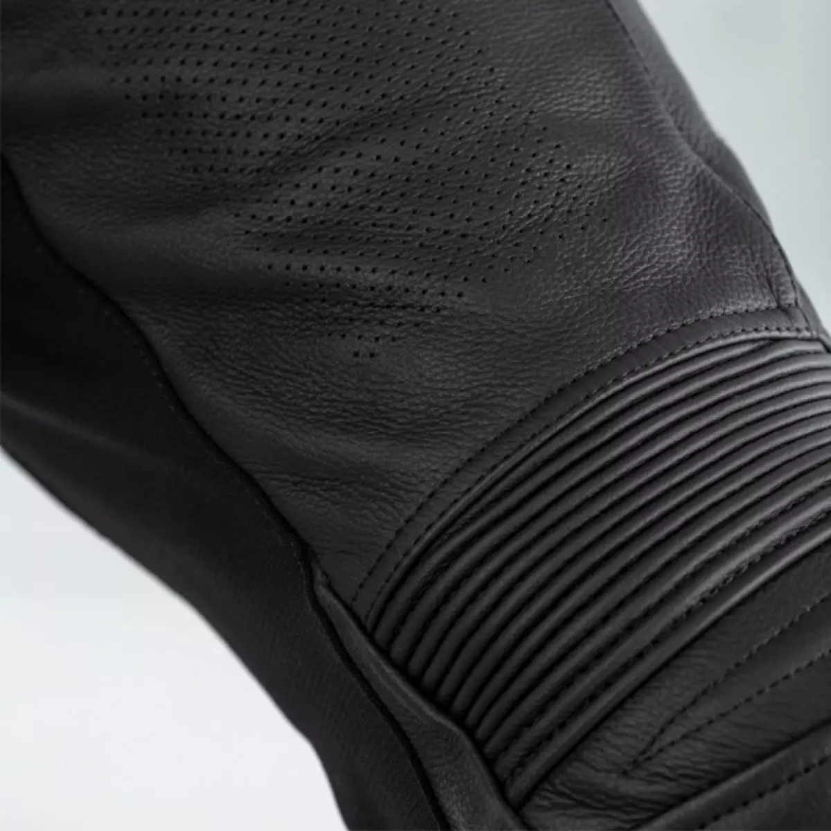RST vous présente son pantalon moto en cuir pour homme, le Sabre en coloris noir.