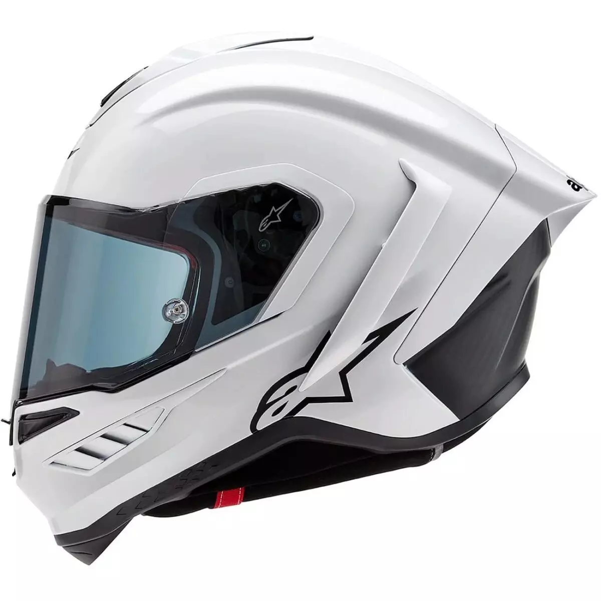 Alpinestars vous présente son casque moto racing, le Supertech R10 Solid en coloris blanc brillant et noir mat.