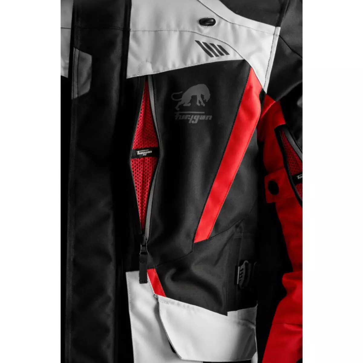 Furygan vous présente sa veste, la Apalaches Evo en coloris noir et rouge.