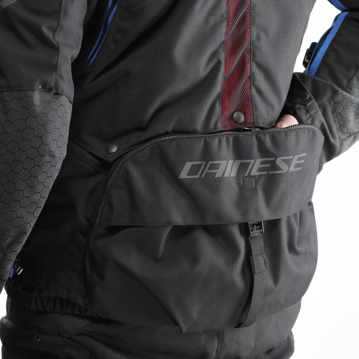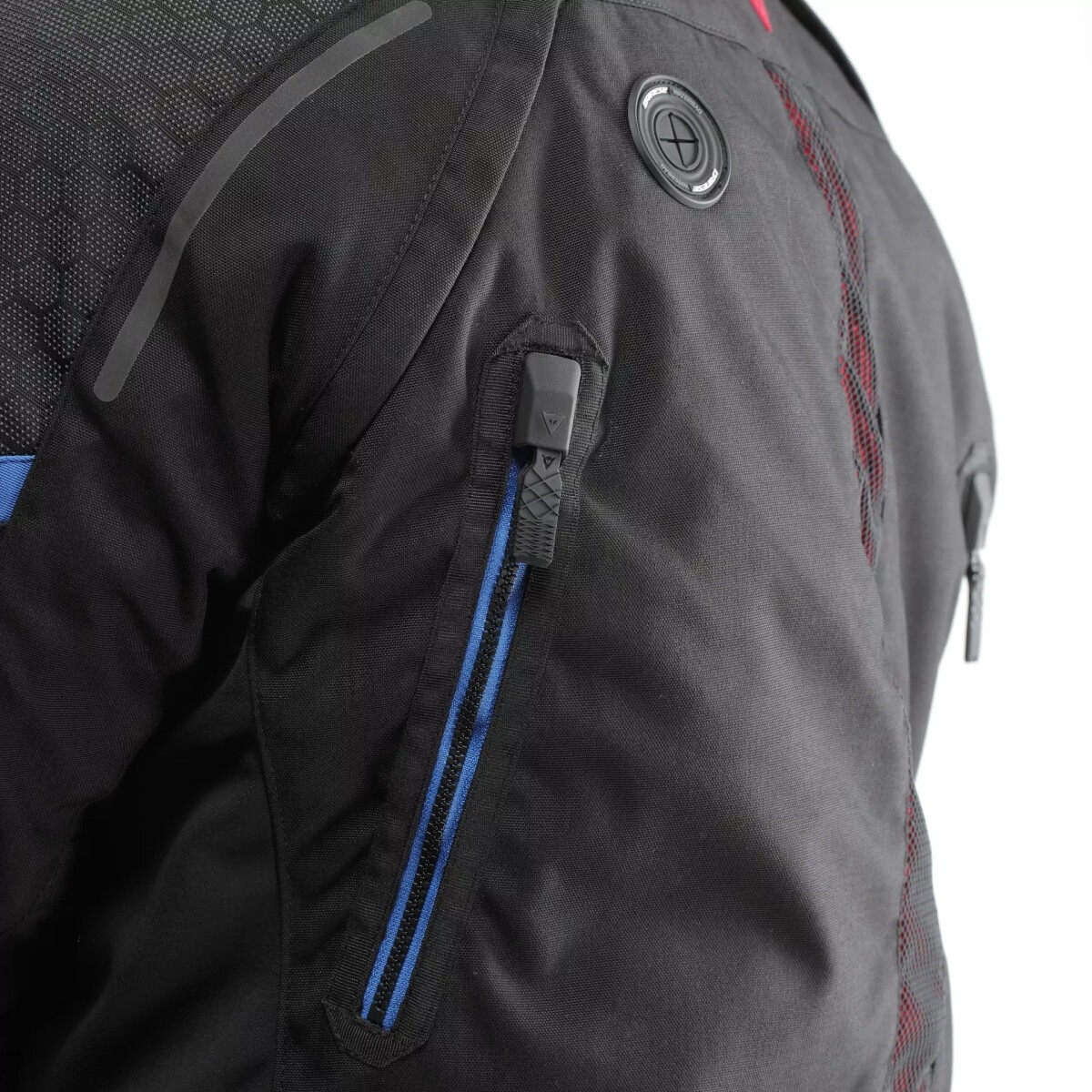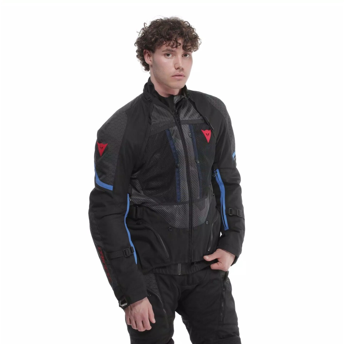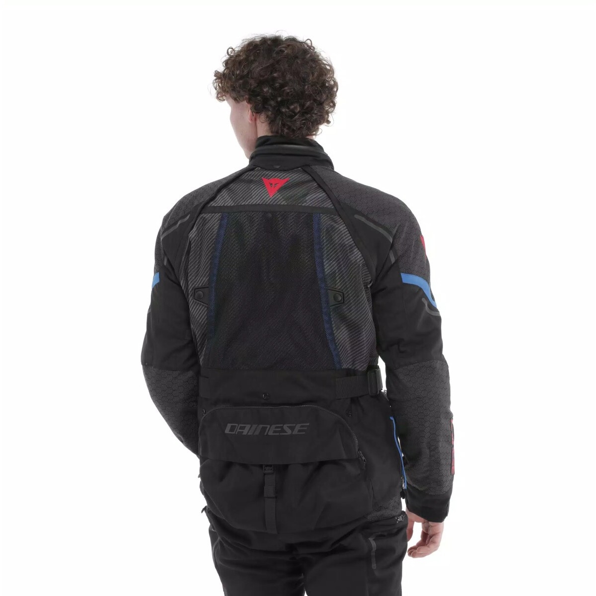 Dainese nous présente sa veste adventure, la Super Adventure Absoluteshell en coloris noir et bleu.