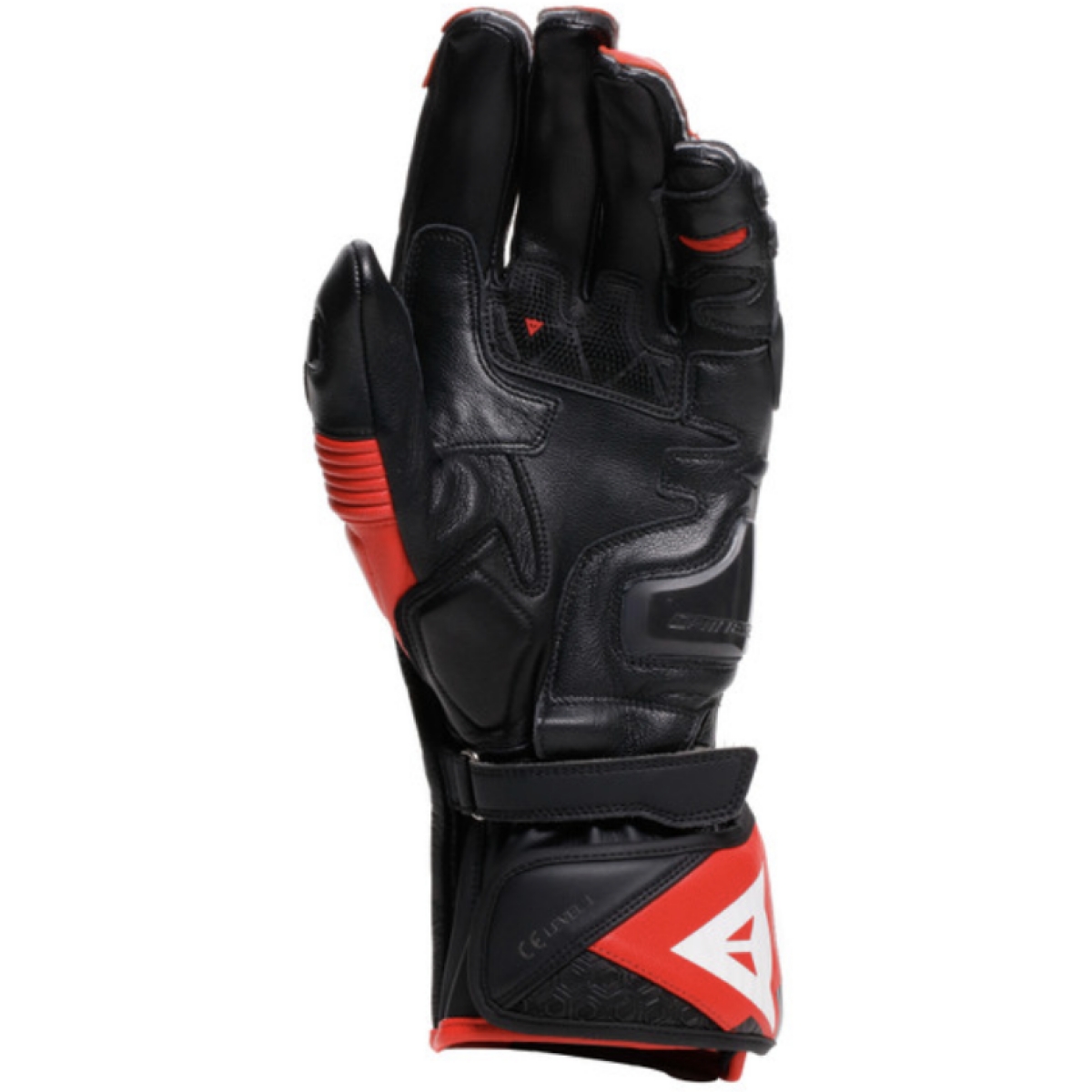 Dainese vous présente ses gants racing pour homme, les Fiero Metal en coloris noir, rouge lave et blanc.