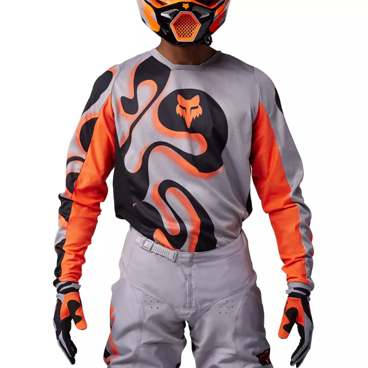 Fox vous présente son maillot cross, le 180 Emotion en coloris gris métal.