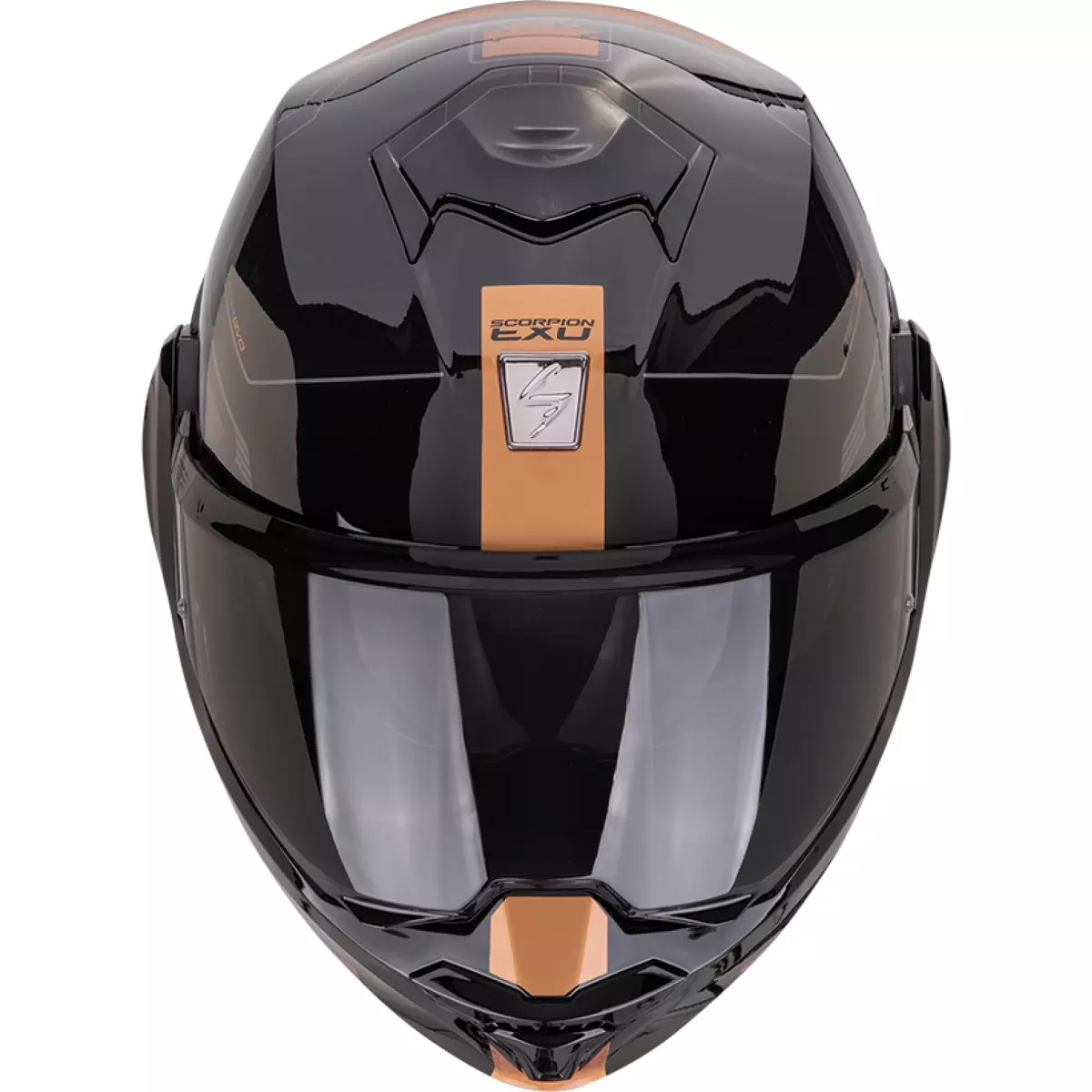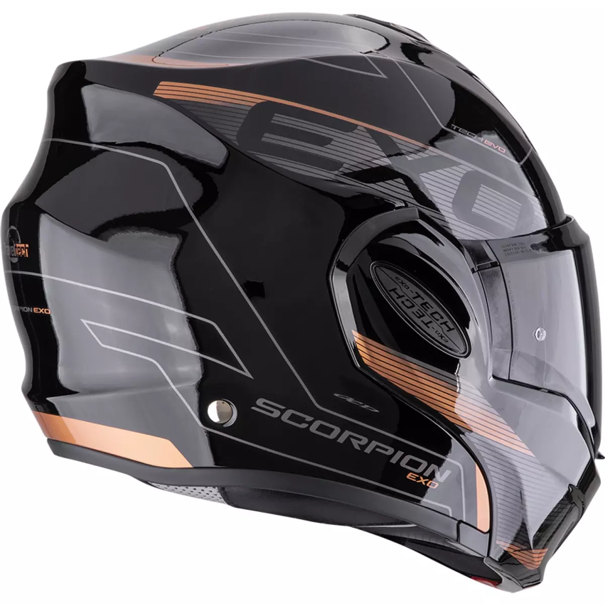 Scorpion vous présente son casque moto modulable, l'Exo Tech Evo Traveller en coloris noir et cuivre.