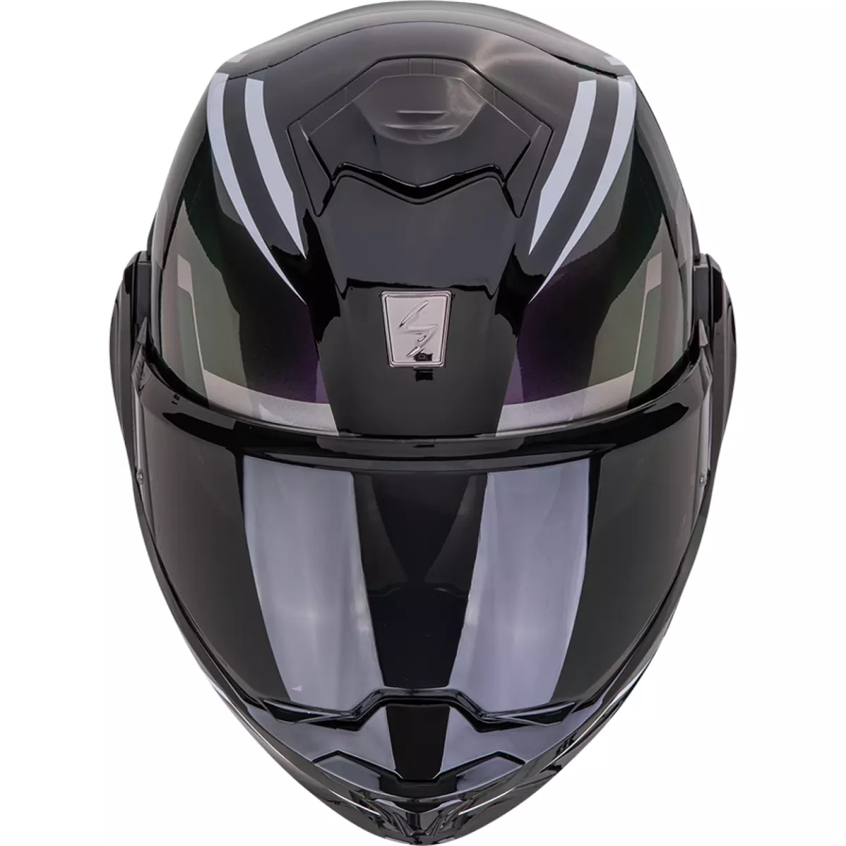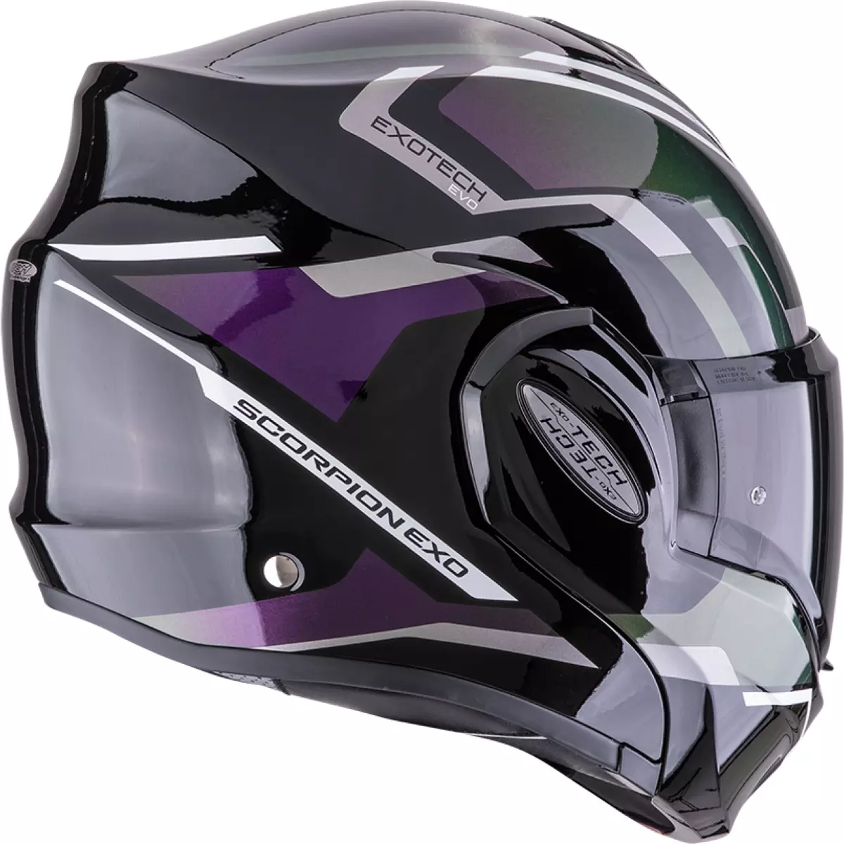 Scorpion vous présente son casque moto modulable, l'Exo Tech Evo Furio en coloris noir et violet.