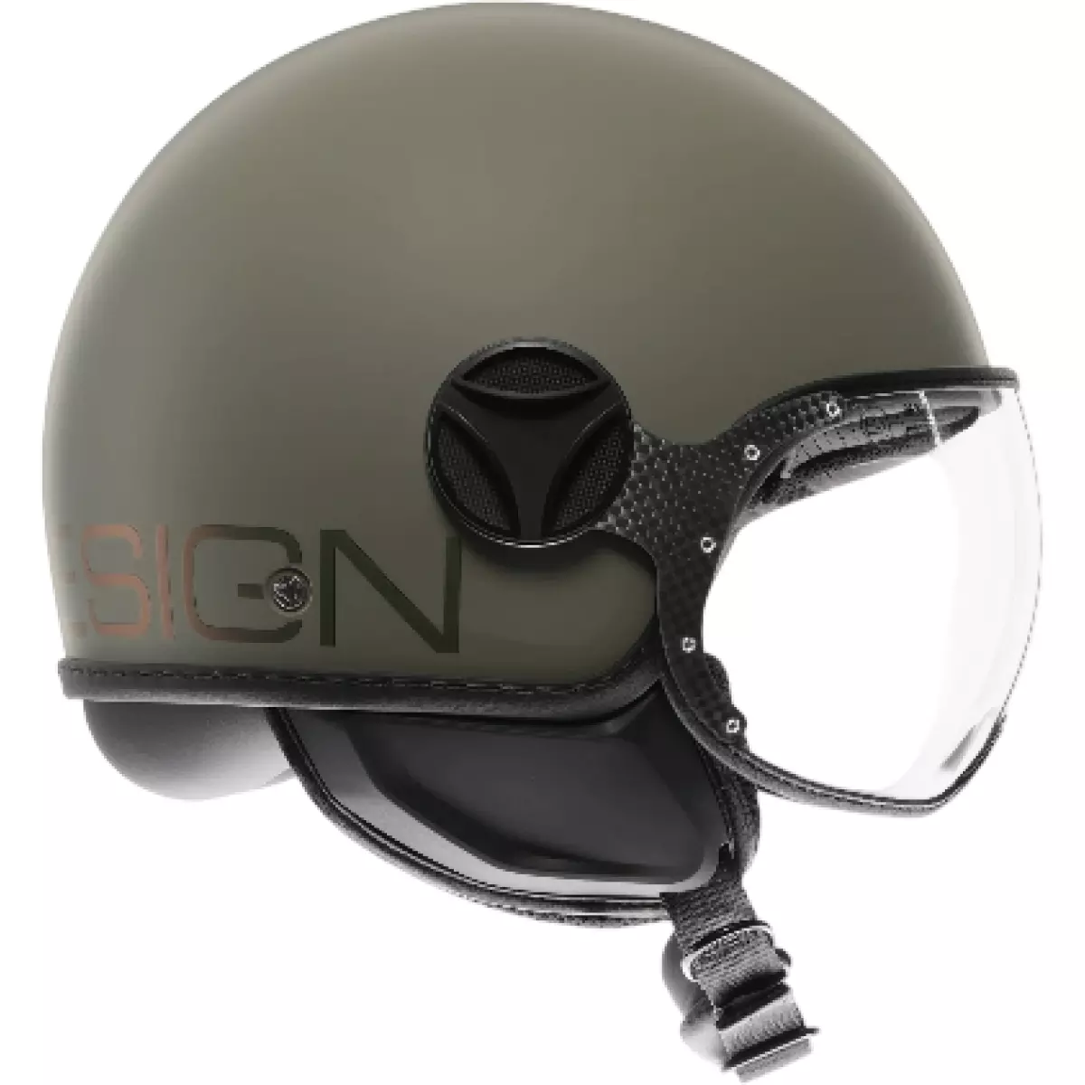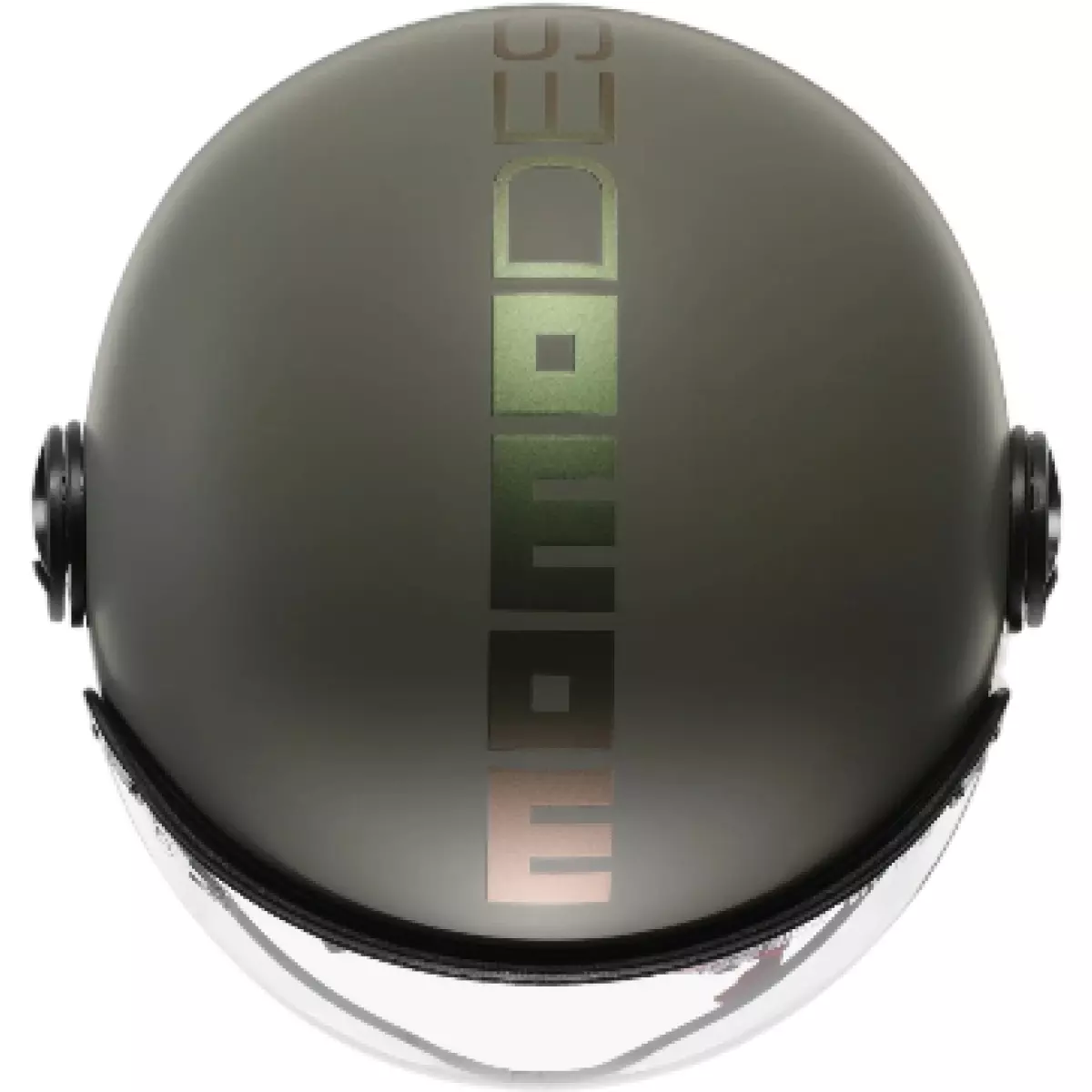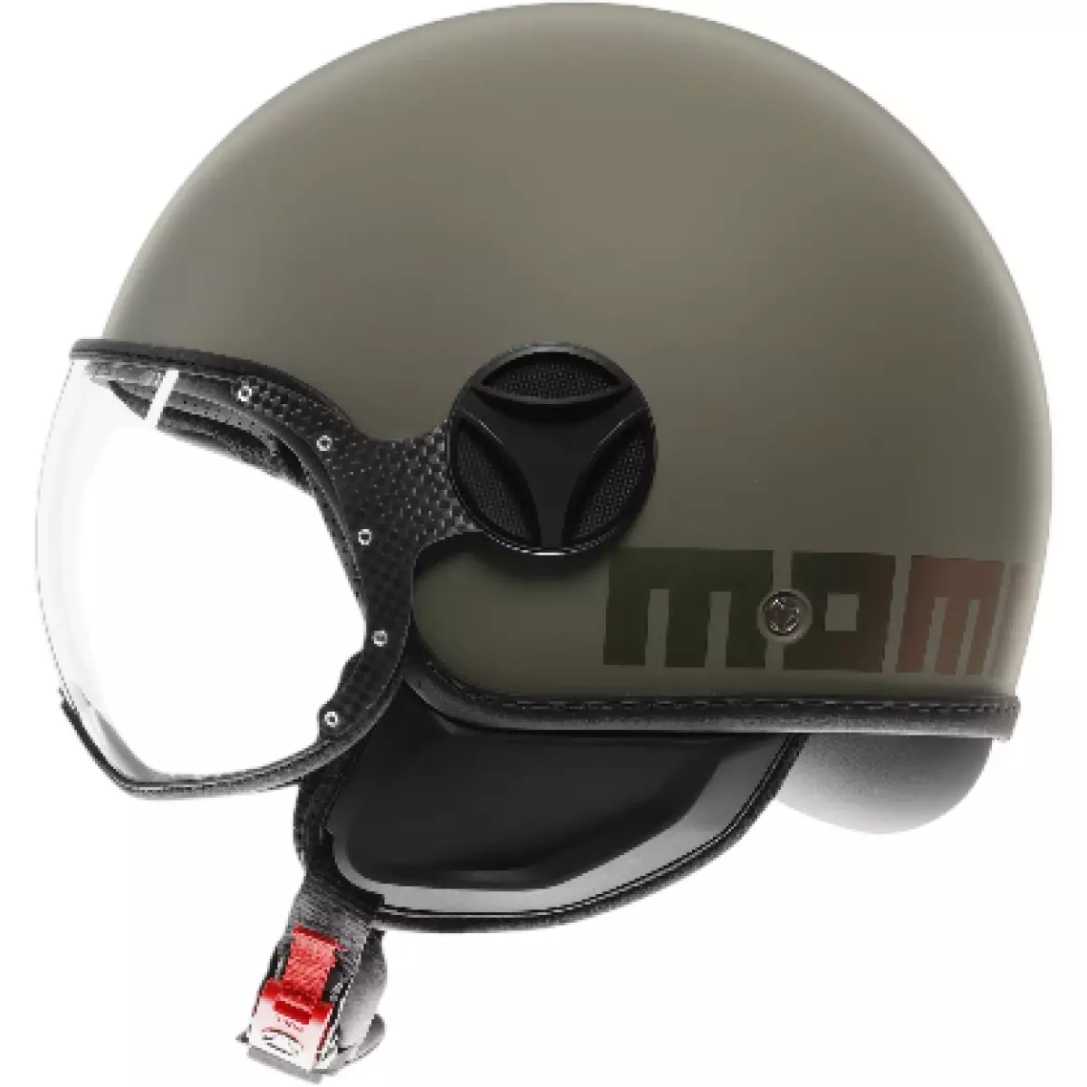 Momo Design nous propose son casque jet, le Fighter Classic Flip en coloris vert et bronze mat.