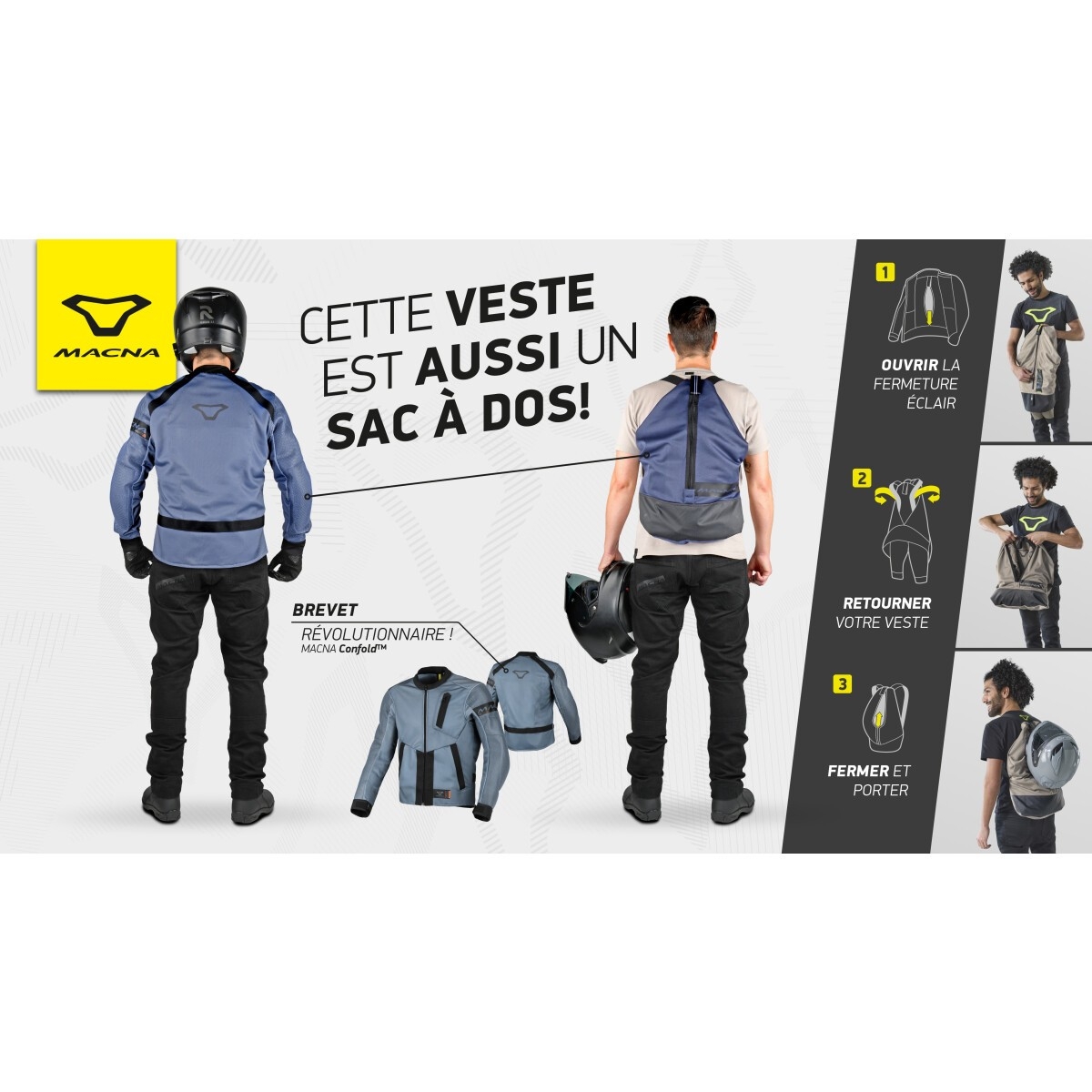 Macna vous présente sa veste moto, la Torido en coloris gris et noir.