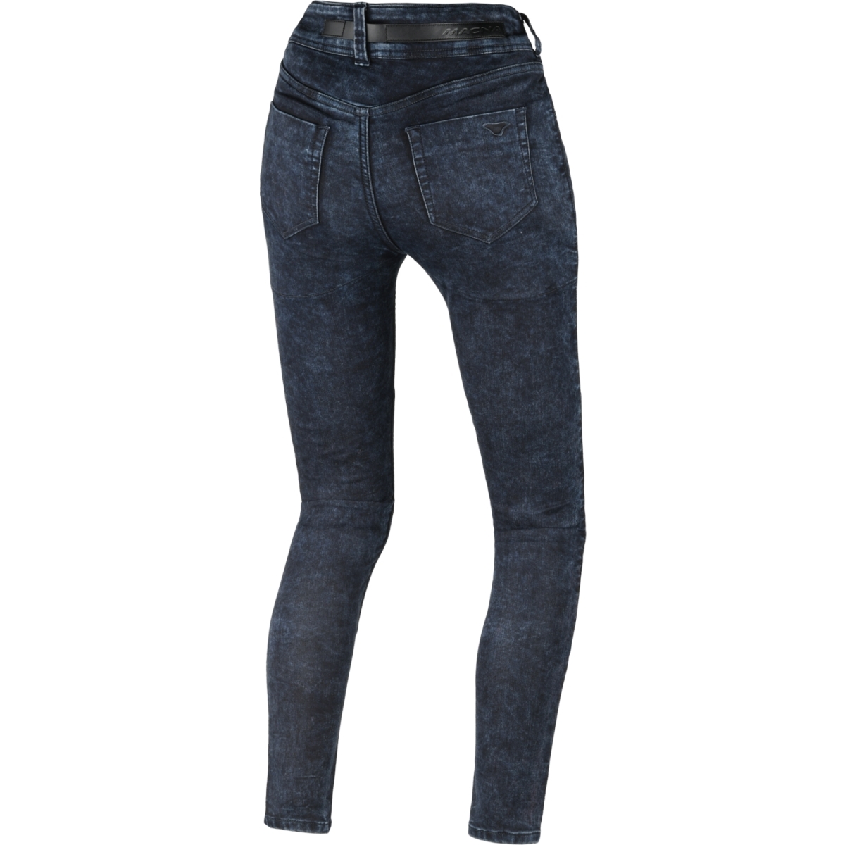 Macna vous présente son jean moto pour femme, le Bernis Skinny en version courte en coloris bleu.