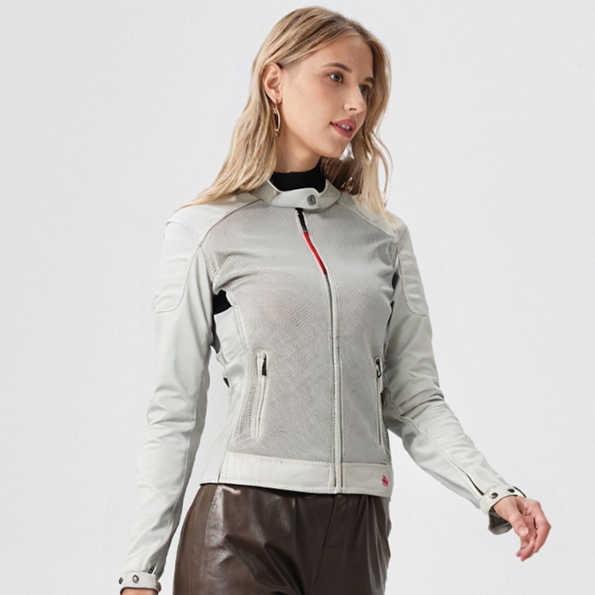 Helstons nous propose son blouson moto pour femme, le Jody Air en coloris silver.