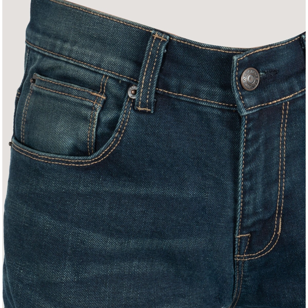 jean est homologué CE classe AA et est équipé de protections BETAC amovibles aux hanches (modèle STRA-B) et aux genoux, ajustables en hauteur (modèle STRA-HIP). Il présente une coupe ajustée pour un meilleur confort et dispose de 2 poches avant et 2 poches arrière.