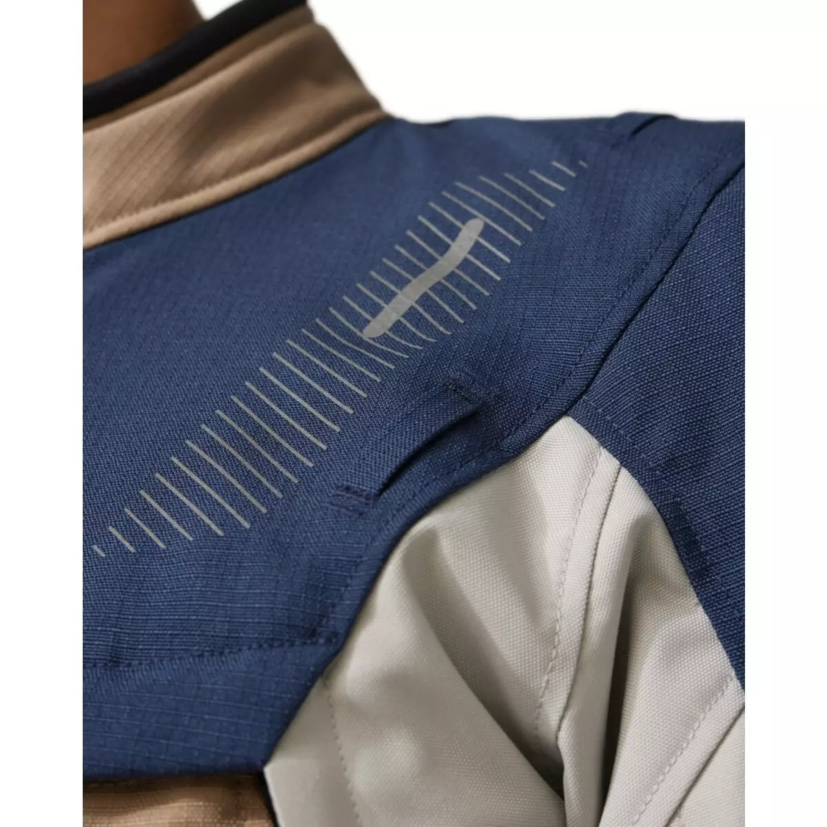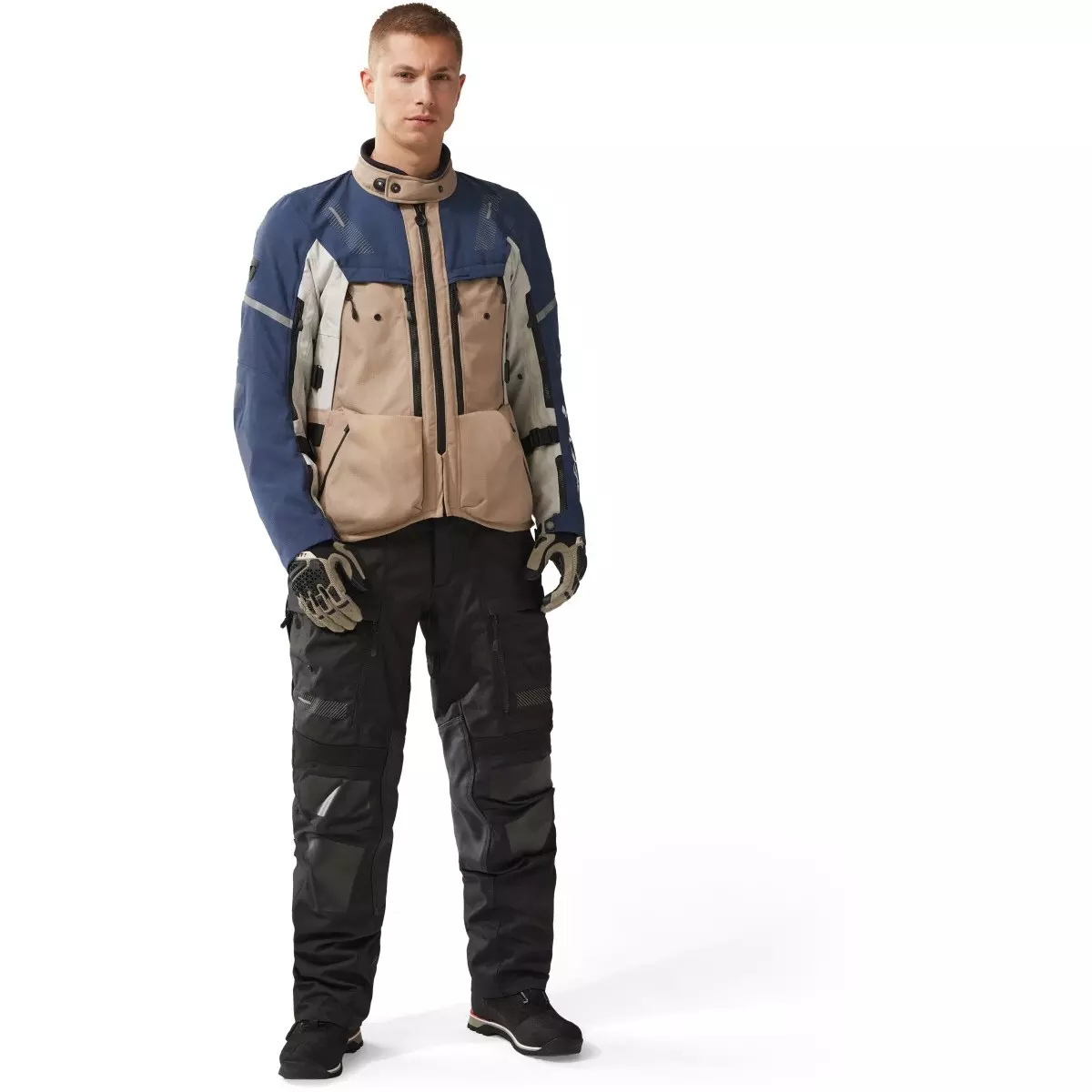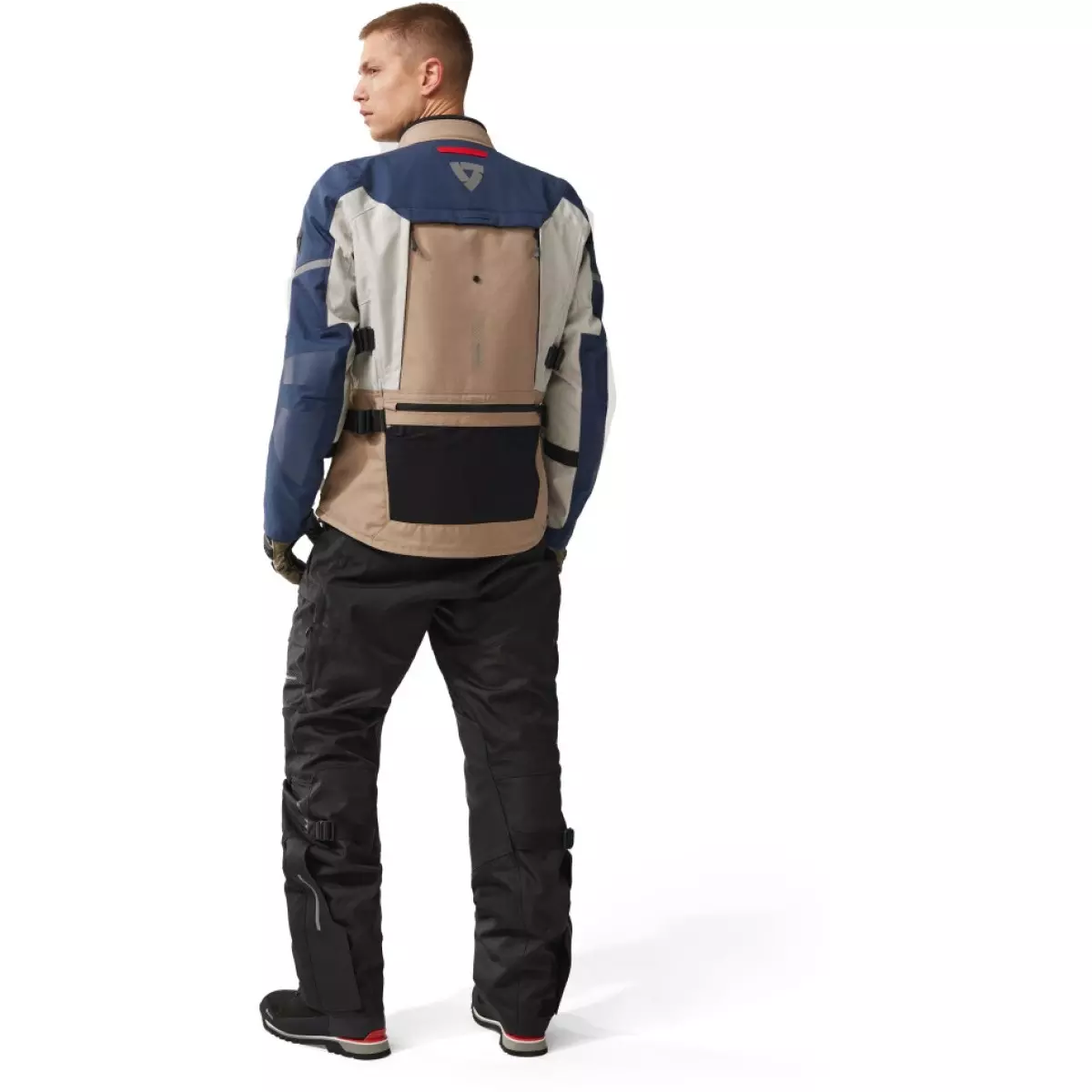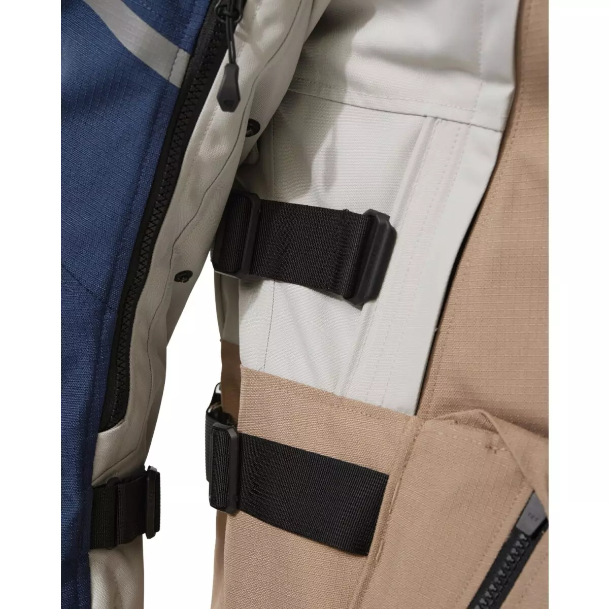 Rev'It nous propose sa veste, la Sand 5 H2O en coloris sable et bleu.