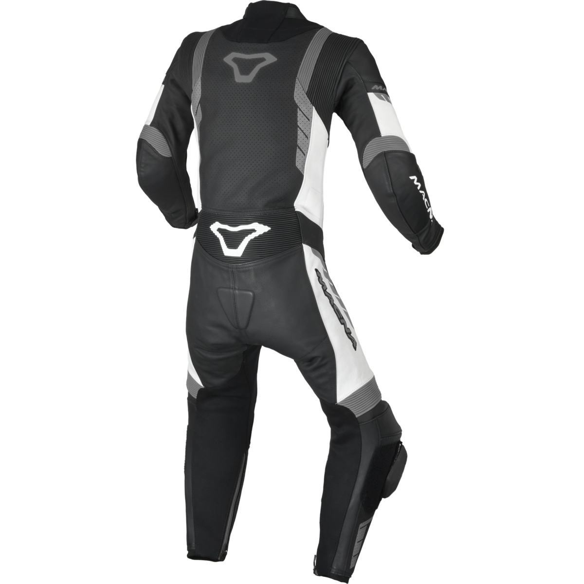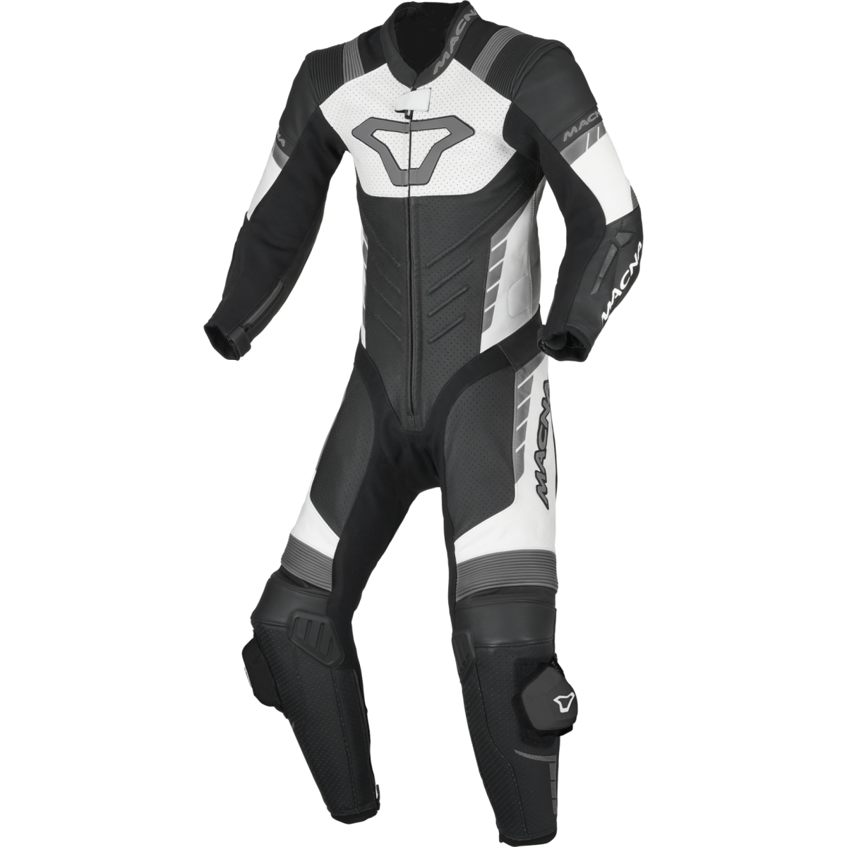 Macna vous présente sa combinaison moto 1 pièce pour enfant et jeunes adulte, la Varshall en coloris noir et blanc.