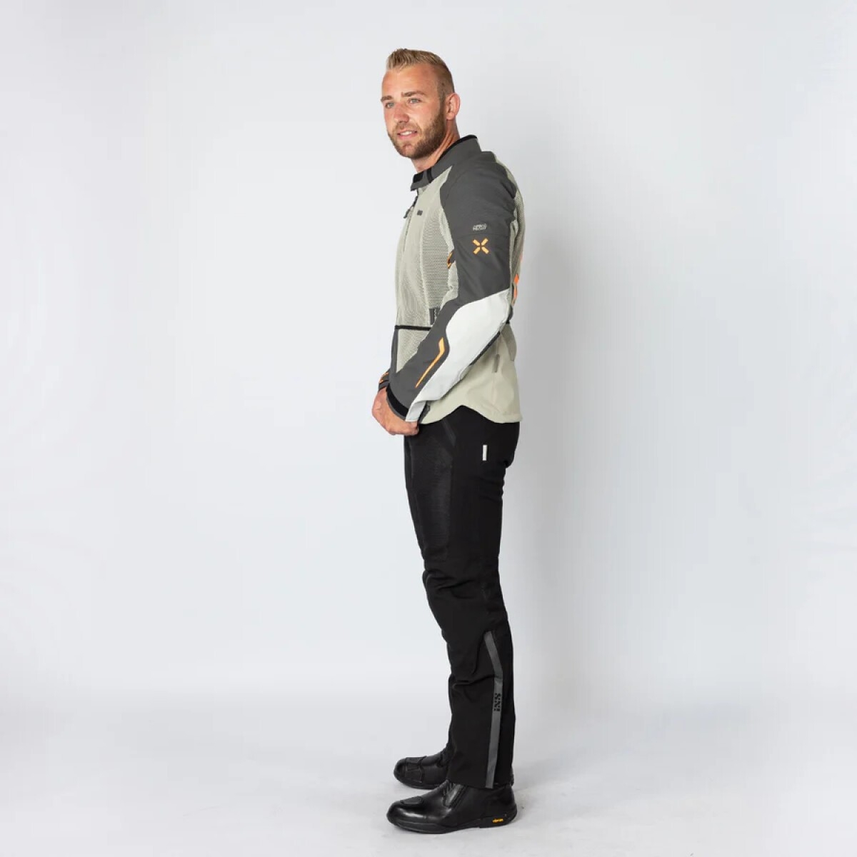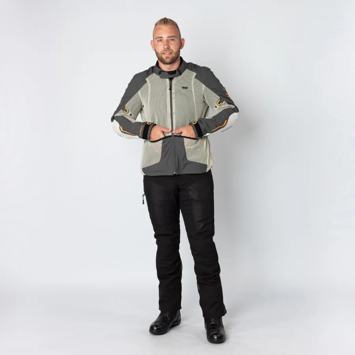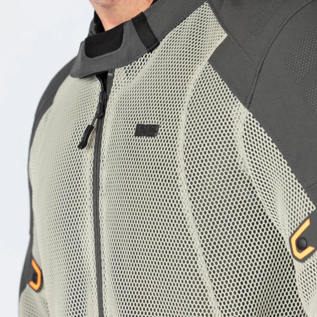 IXS vous présente la veste moto, la Tourster BigAir 1.0 en coloris gris clair, gris foncé et orange.