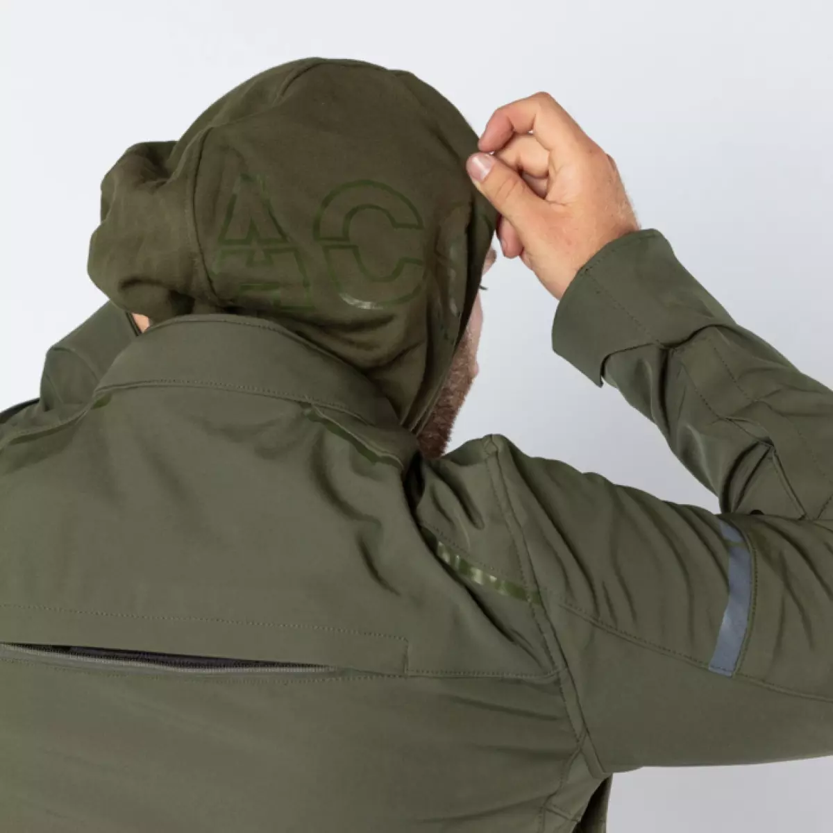 OptionsAvec capuche / Doublure fixe / Imperméable / Prédisposé(e) dorsale / Raccord pantalon/veste