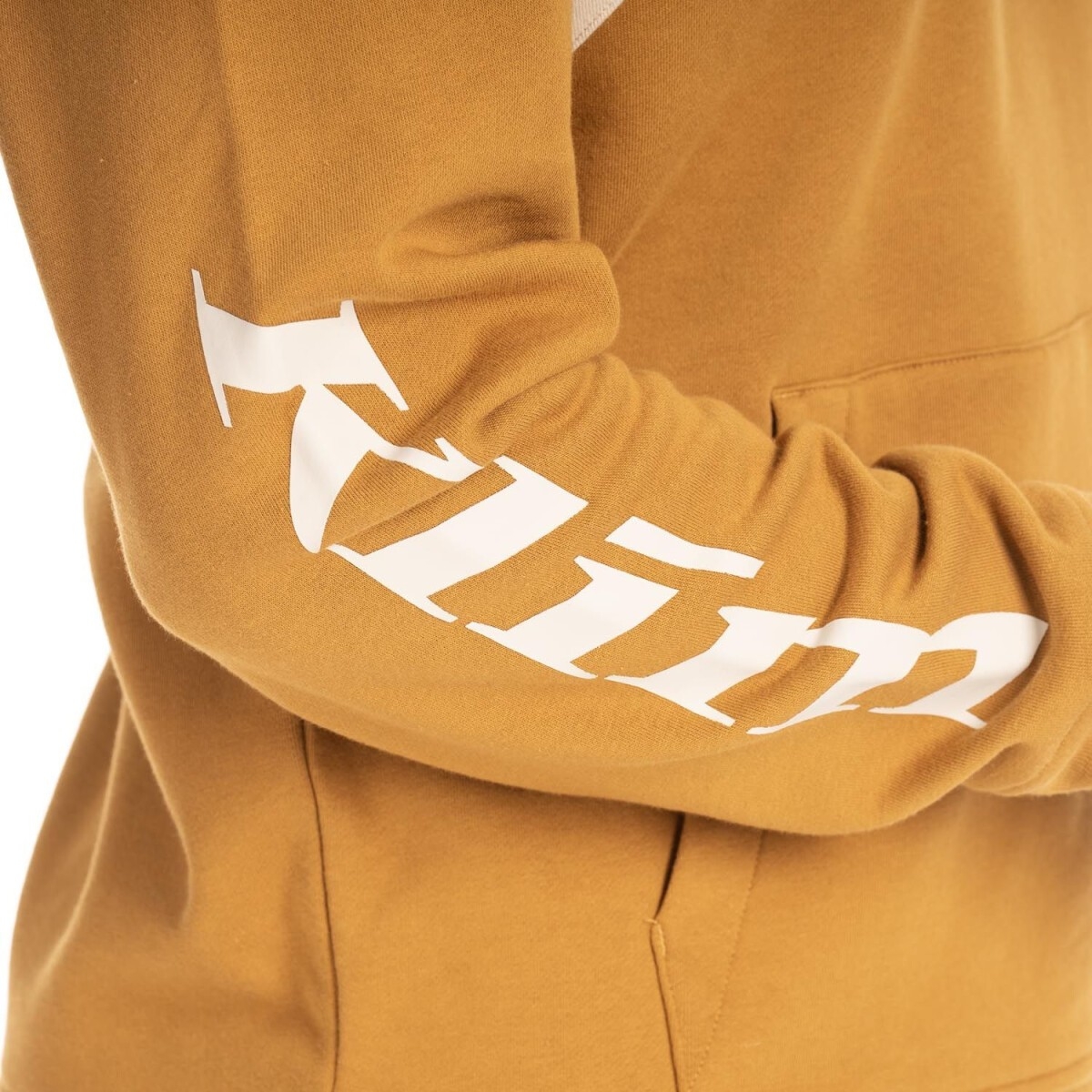 Klim vous présente son sweat à capuche, le Cliff Hanger en coloris marron clair, blanc et bleu foncé.