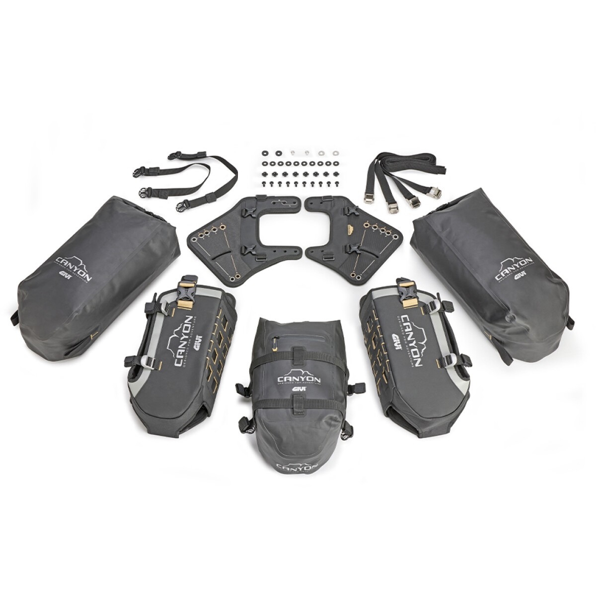 Givi vous présente son ensemble de sacoches avec base de fixation GRT721B Canyon.