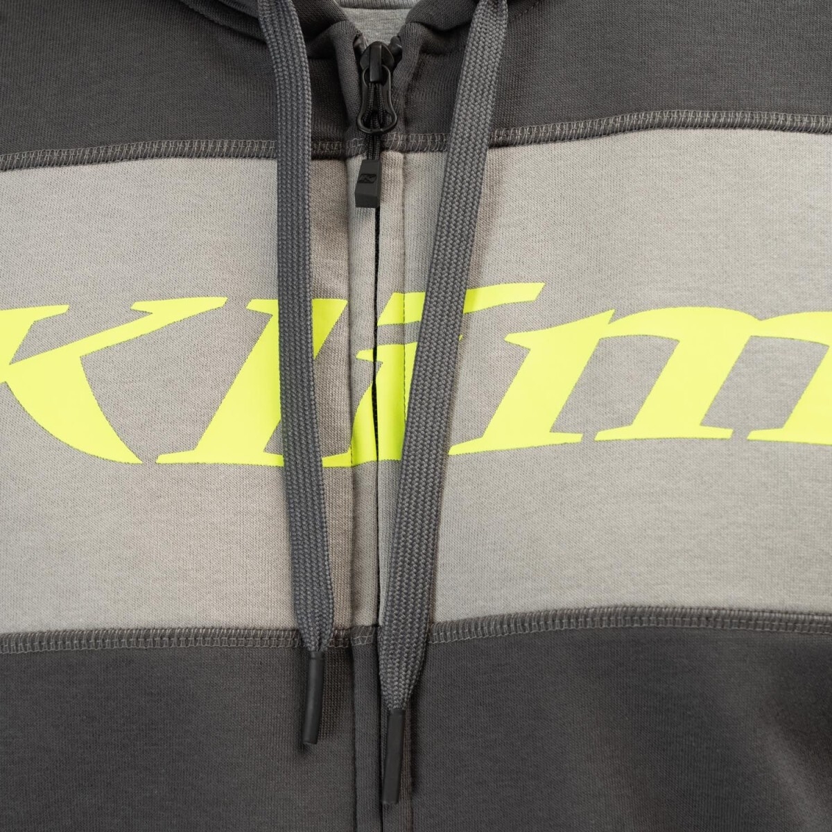 Klim vous présente son sweat à capuche, le Trailside Full Zip en coloris gris foncé, gris clair et jaune fluo.