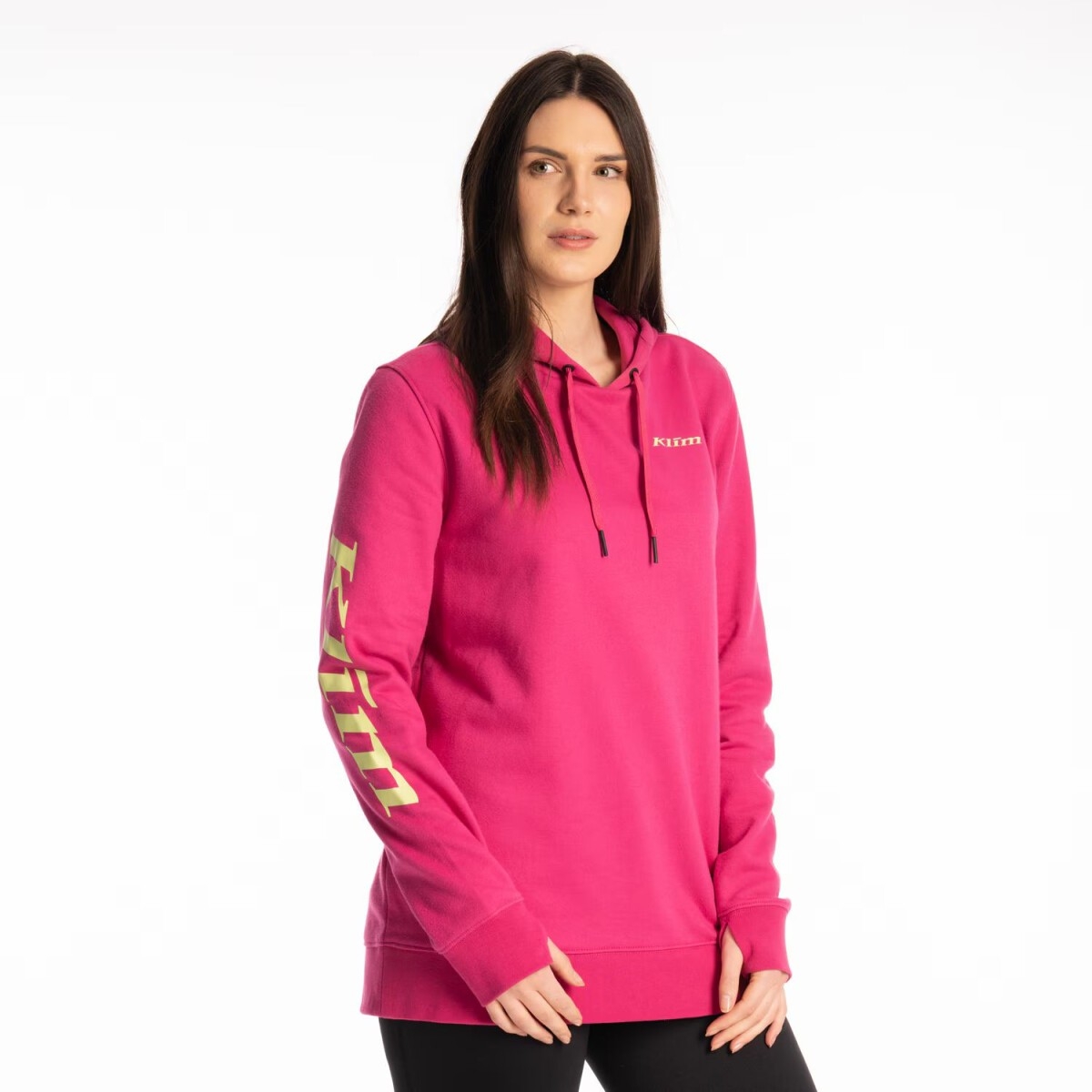 Klim vous présente son sweat à capuche pour femme, le Mariposa en coloris fuchsia et blanc.