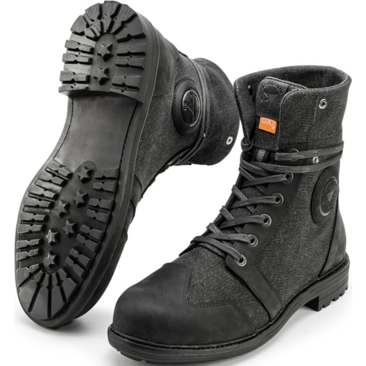 Affirmez votre style urbain avec ces bottines moto combinant tissu respirant et cuir robuste. Elles vous gardent au sec grâce à leur doublure imperméable, tout en assurant une sécurité discrète avec leurs protections D3O® et PU aux malléoles.