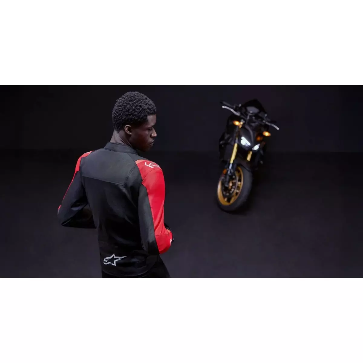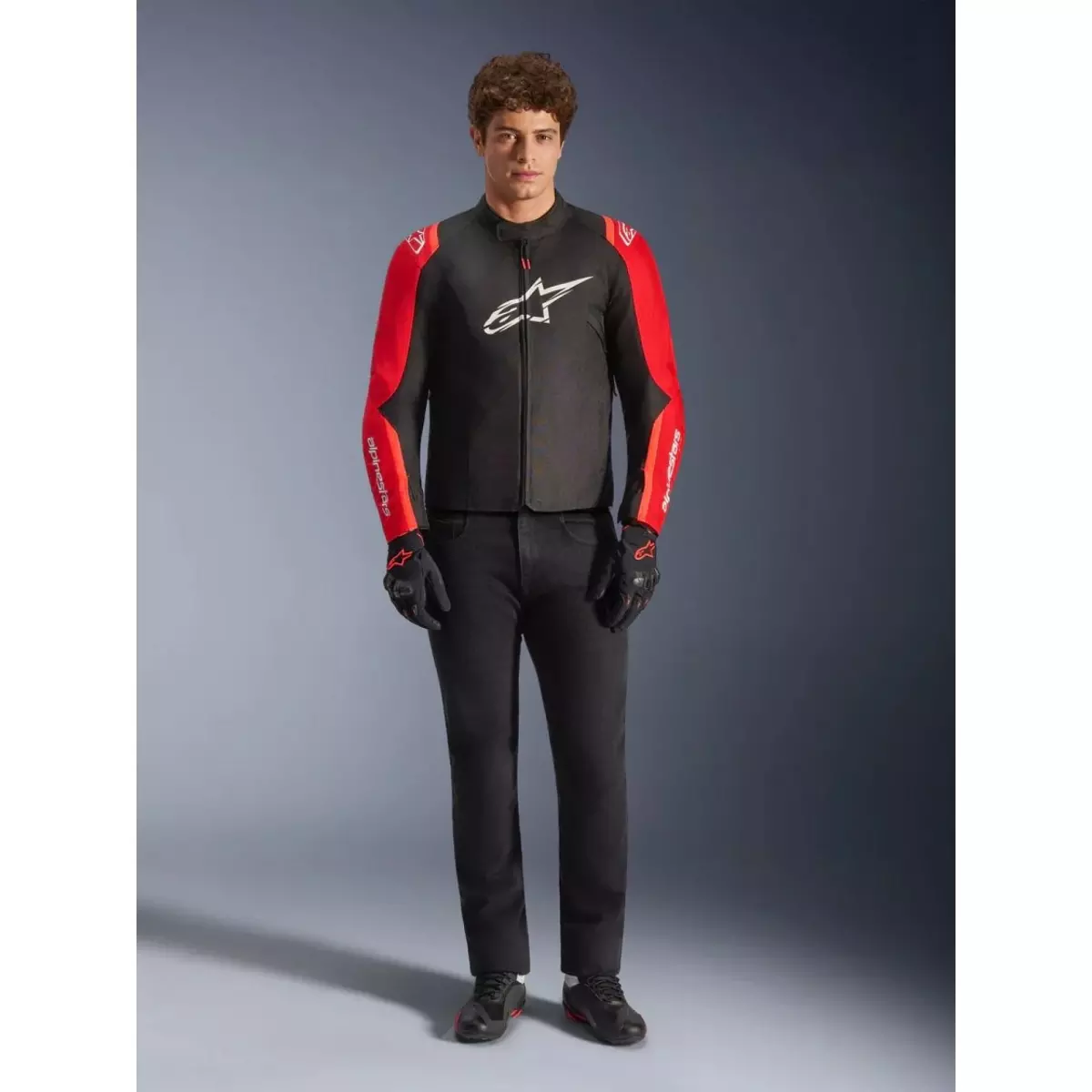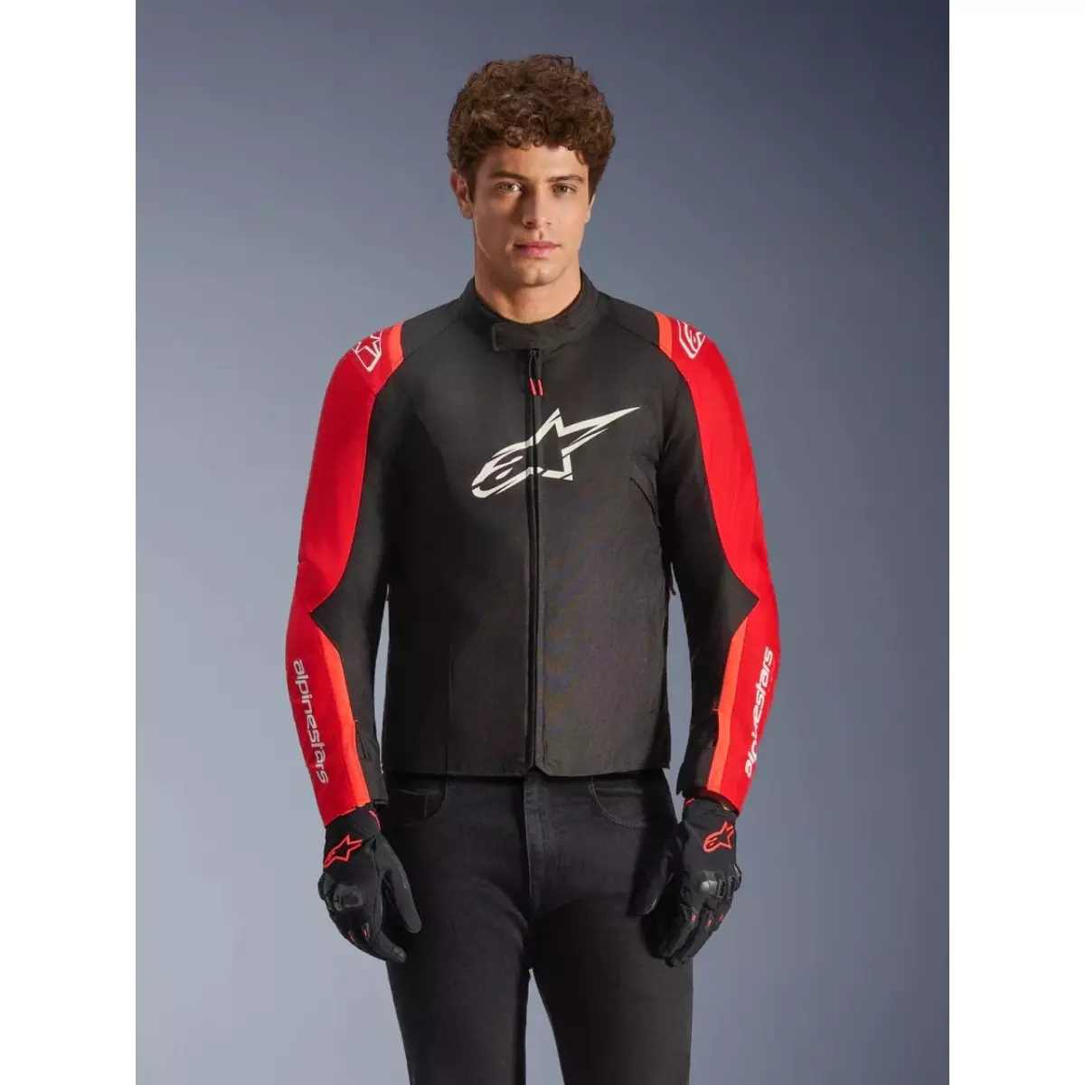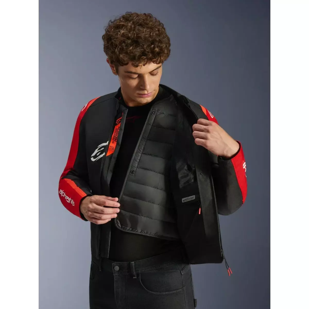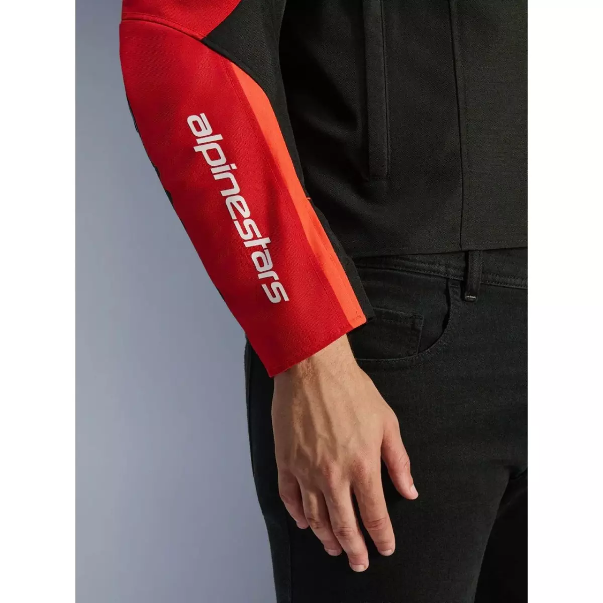 Alpinestars vous présente son blouson moto, le T-SPS V2 WP en coloris noir, rouge et rouge fluo.