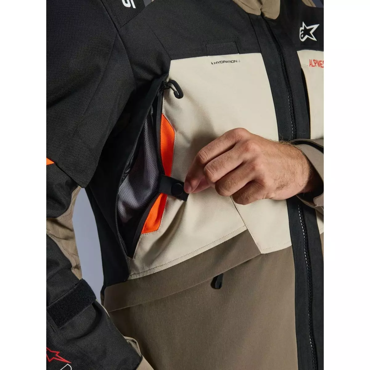 Alpinestars vous présente son blouson moto, le Andes V4 Drystar en coloris marron clair et noir.