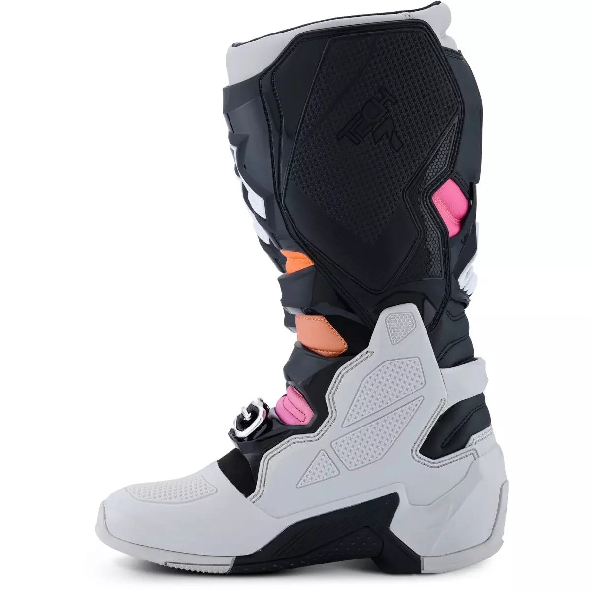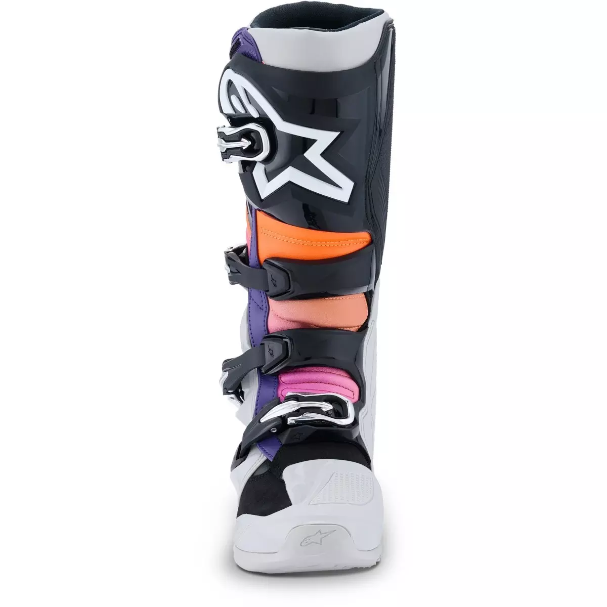 Alpinestars vous présente ses bottes cross, les Tech 7 en coloris noir, gris clair, orange fluo et magenta.