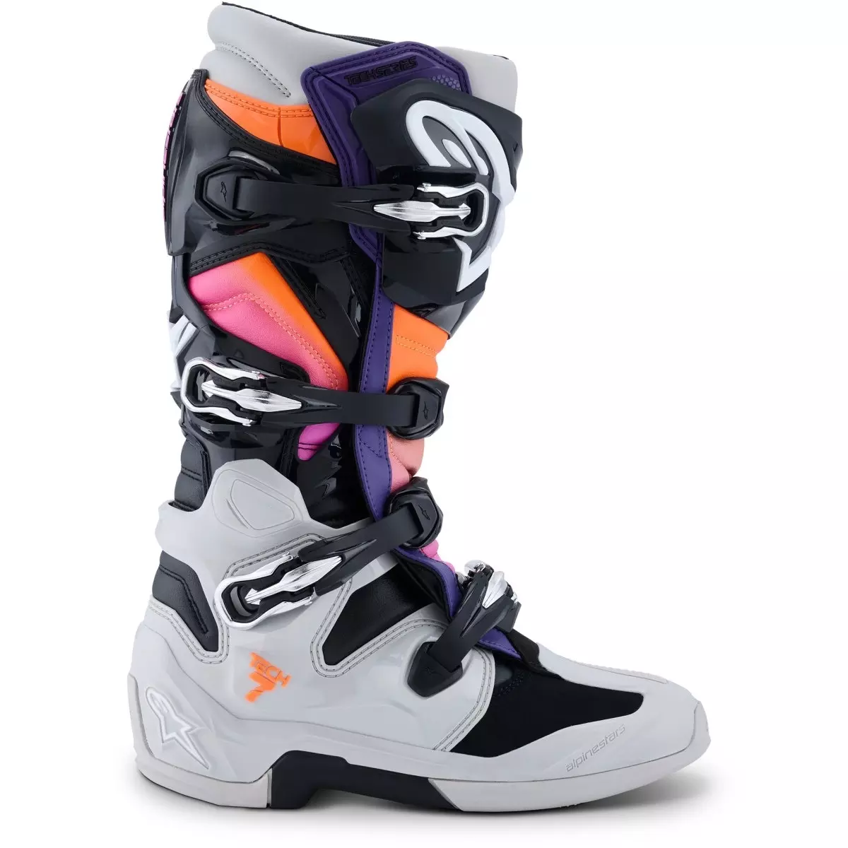 Bottes Cross Alpinestars Tech 7 Noir Gris Clair Orange Fluo Magenta
