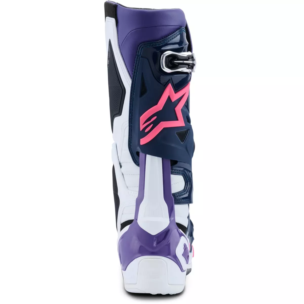Bottes Cross Alpinestars Tech 10 Blanc Violet Bleu Marine Rose Fluo