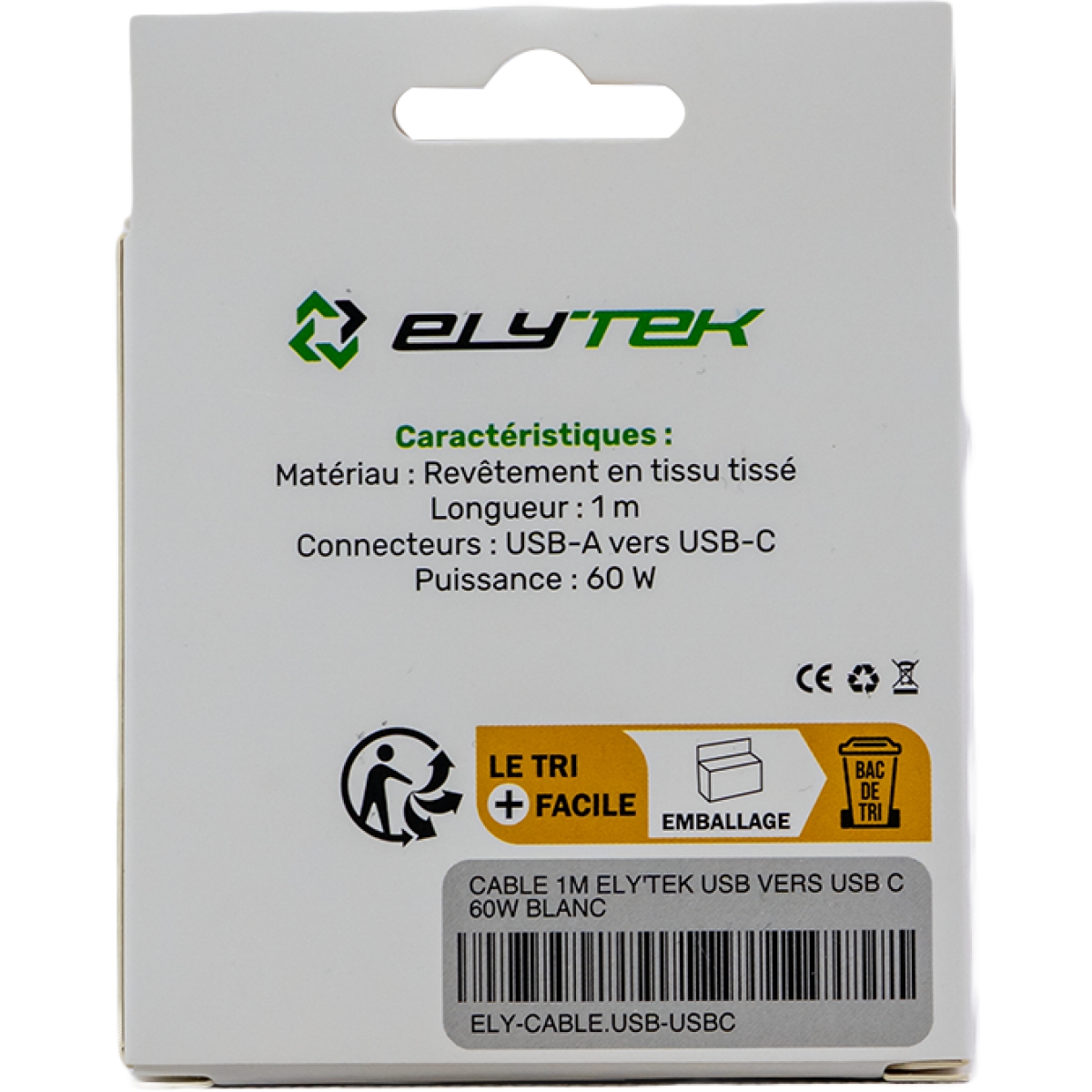 Câble USB Ely'Tek USB-A Vers USB-C 1M 60W