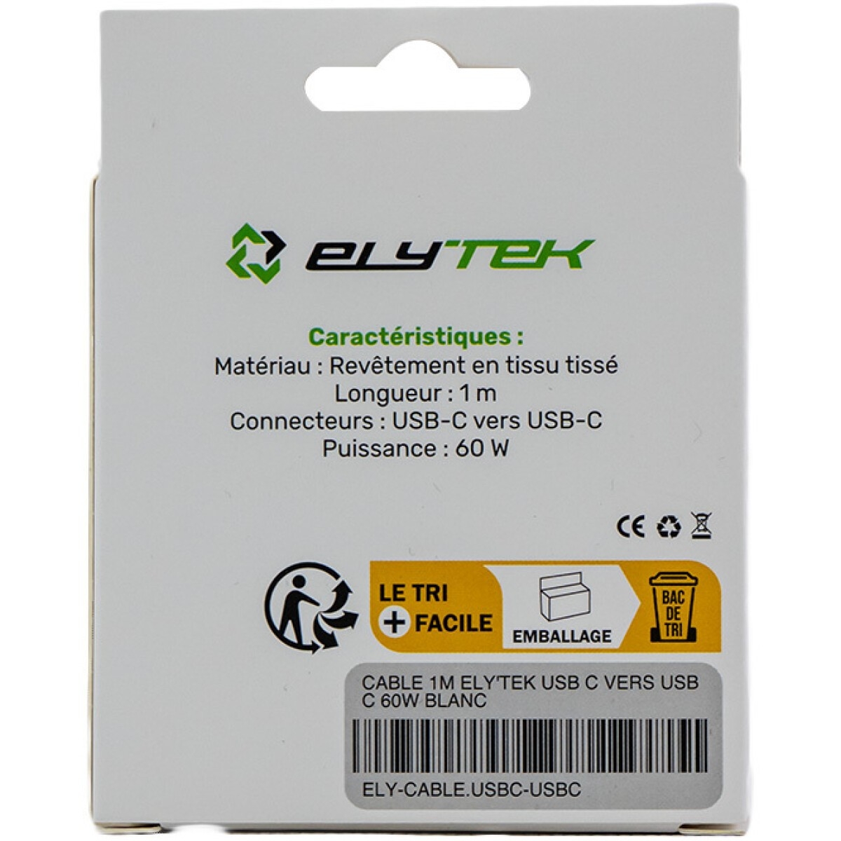Câble USB Ely'Tek USB-C Vers USB-C 1M 60W