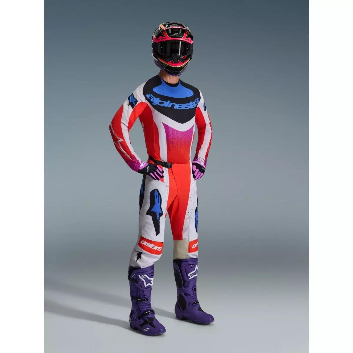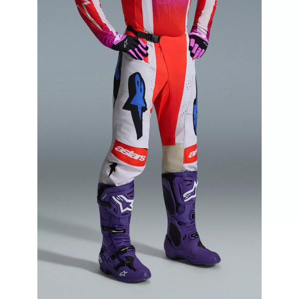 Pantalon Cross Alpinestars Techstar Knif Gris Clair Orange Fluo Noir