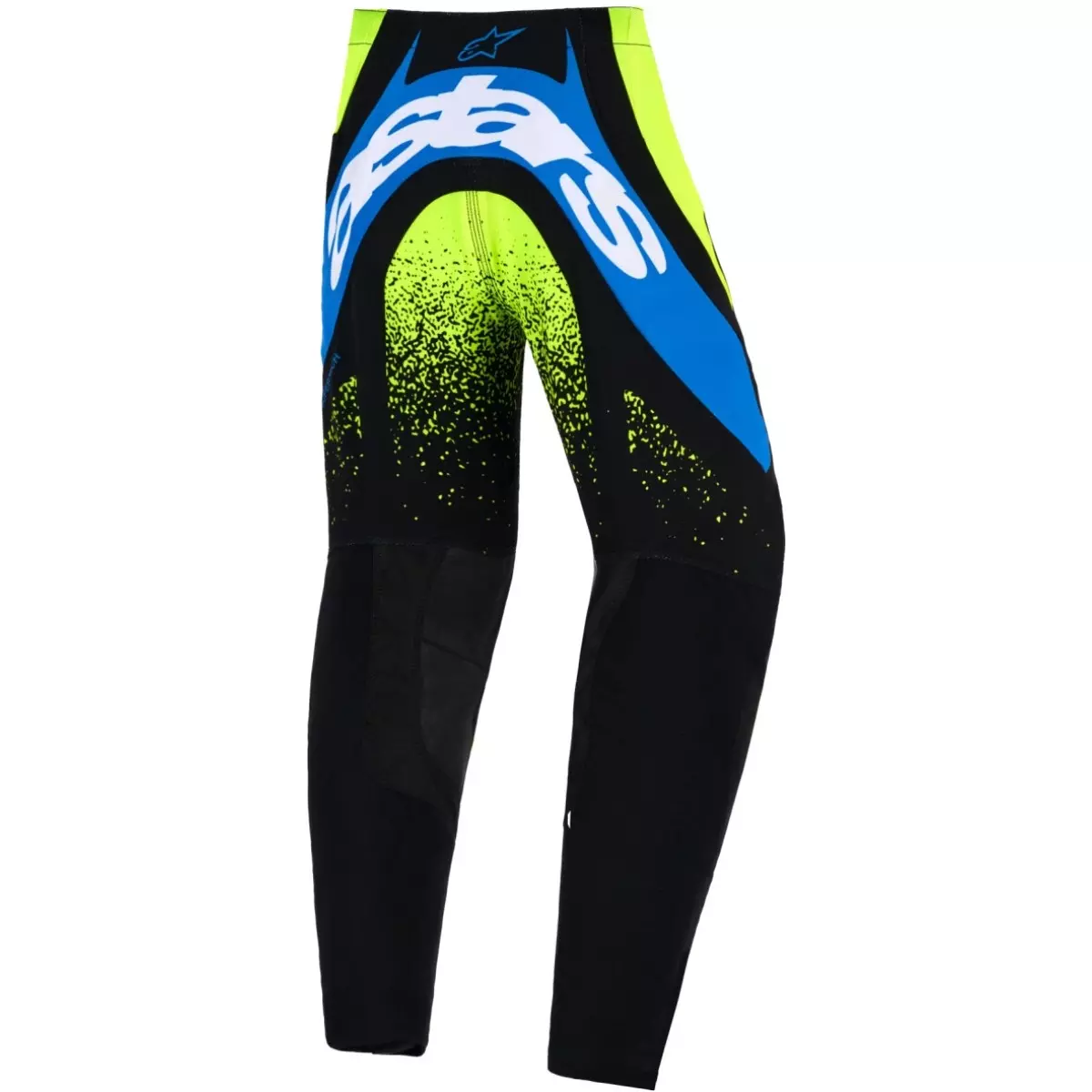 Alpinestars vous présente son pantalon cross pour enfant, le Supertech Nomur en coloris bleu foncé et jaune fluo.