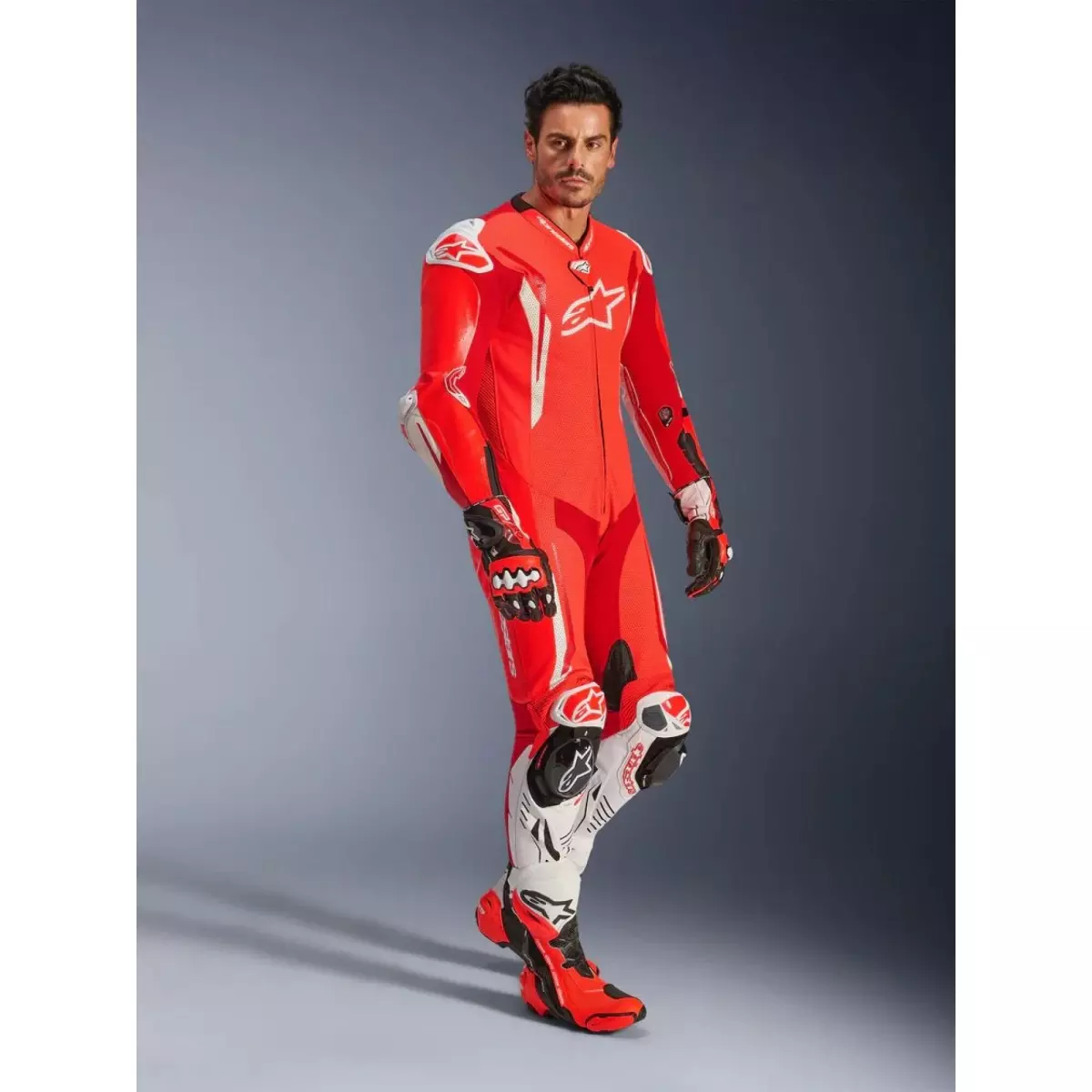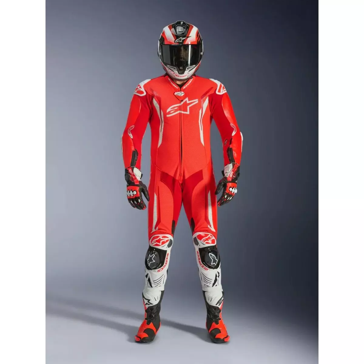 Description Combinaison 1 Pièce Alpinestars GP Tech V5 Rouge Fluo Rouge Blanc