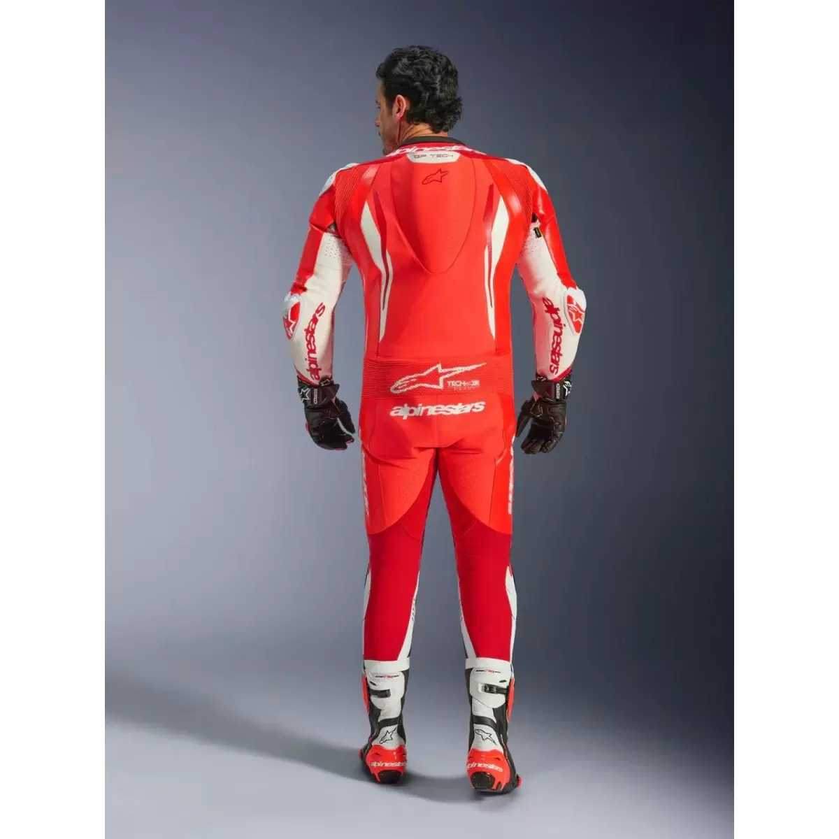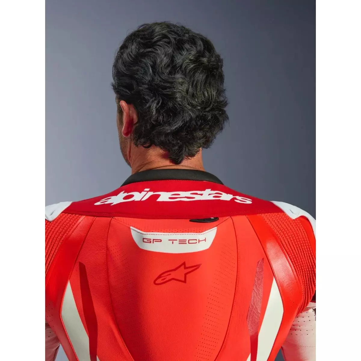 Alpinestars vous présente sa combinaison 1 pièce, la GP Tech V5 en coloris rouge fluo, rouge et blanc.