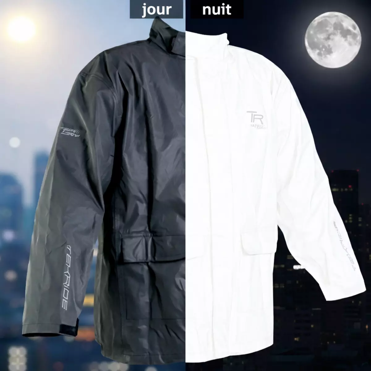Tekride vous présente sa veste de pluie haute visibilité en noir.