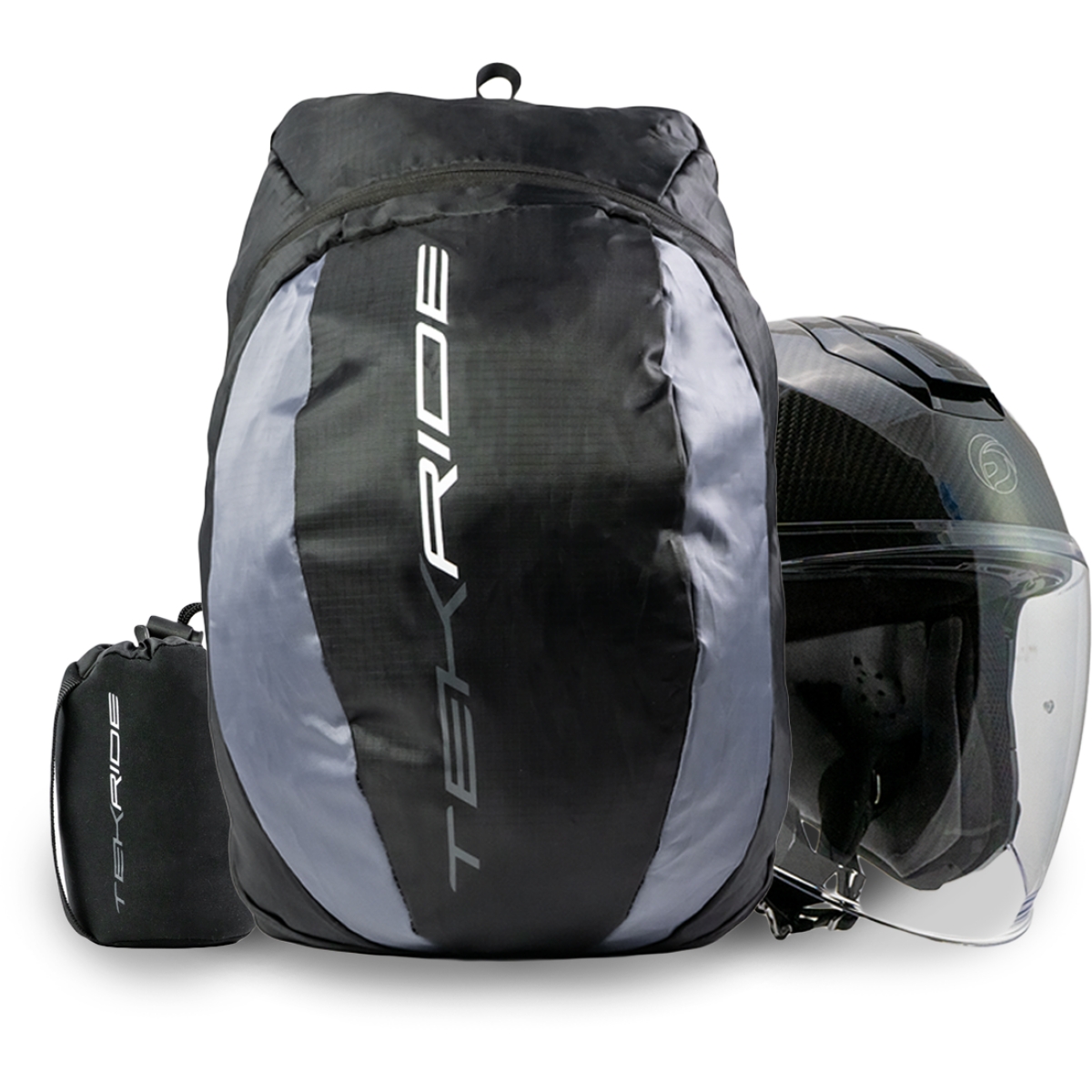 Sac À Dos Tekride Pliable Noir Gris 20L Transport Casque + Housse