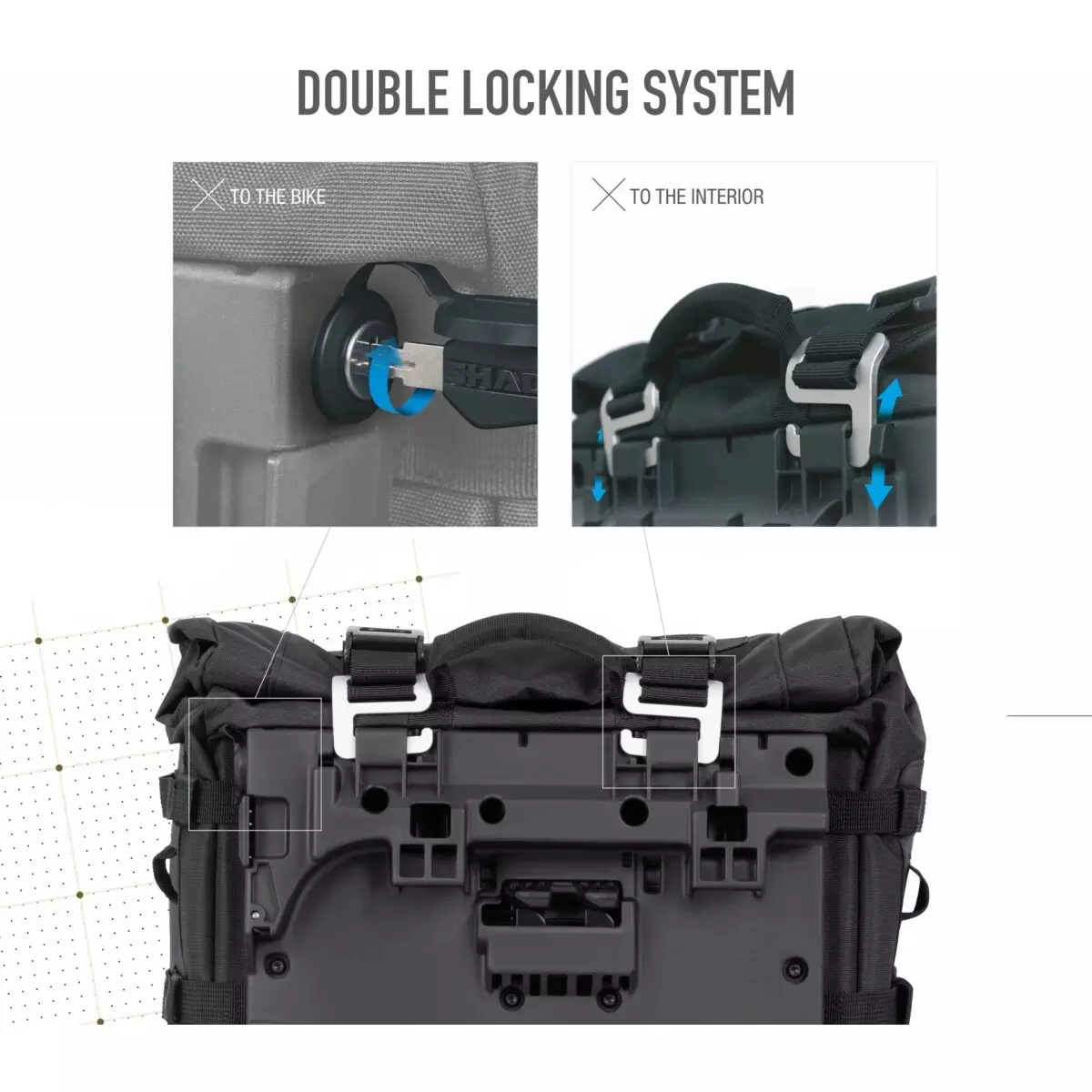 Le système breveté Double Locking System verrouille solidement la sacoche sur son support latéral 3P ou 4P, tout en empêchant l’accès à son contenu — pour une sécurité maximale, que vous rouliez ou que vous fassiez une pause.