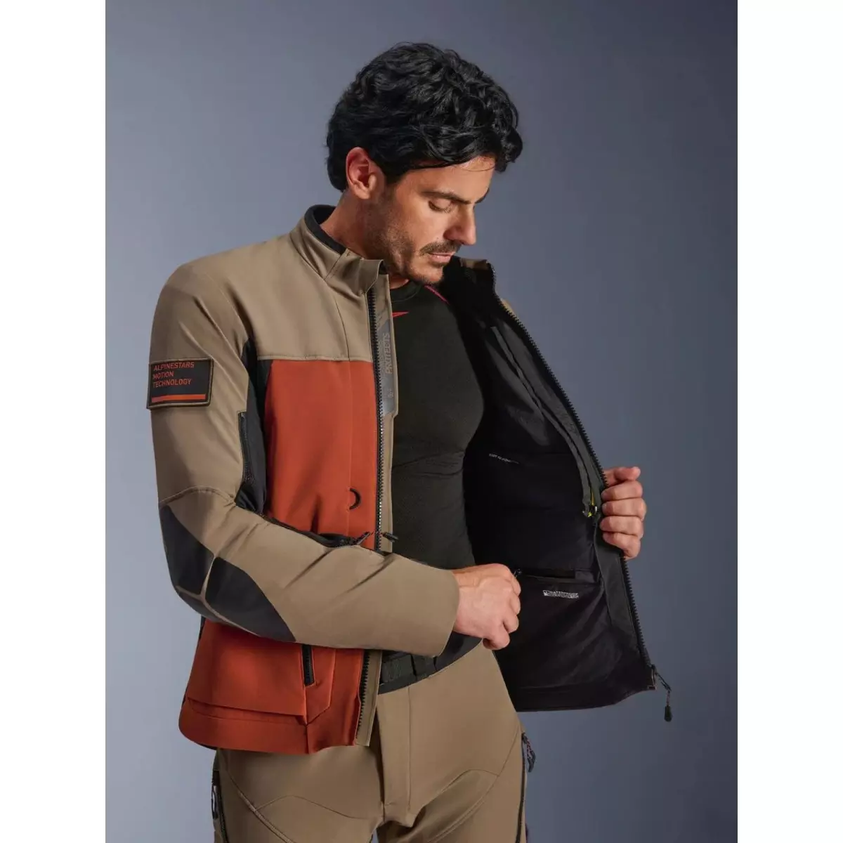 Description Veste Alpinestars AMT-8 Stretch Drystar XF Marron Orange Noir