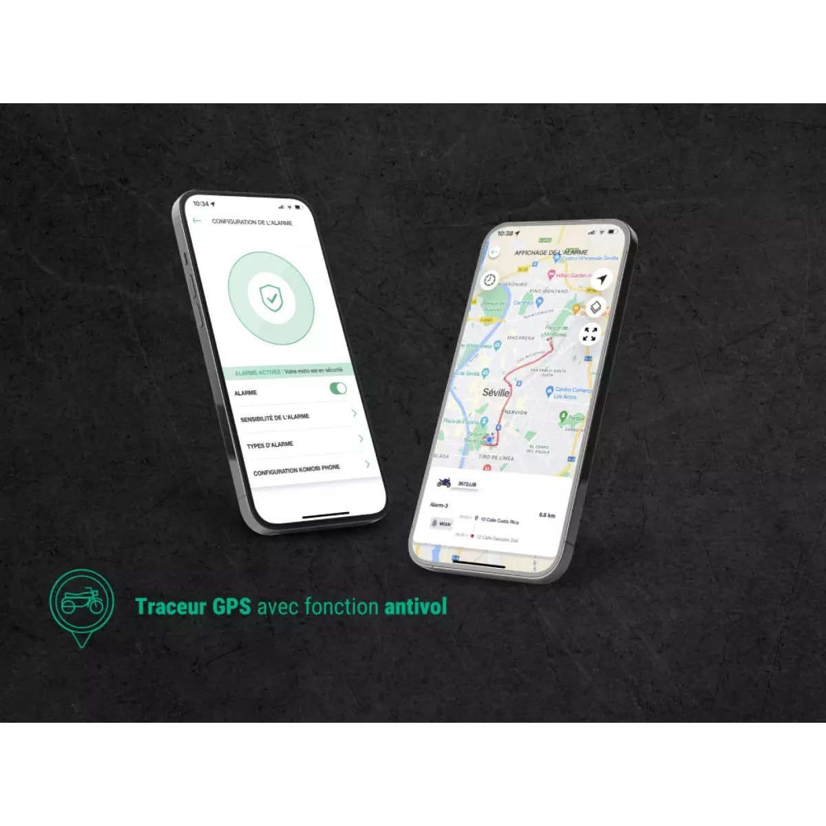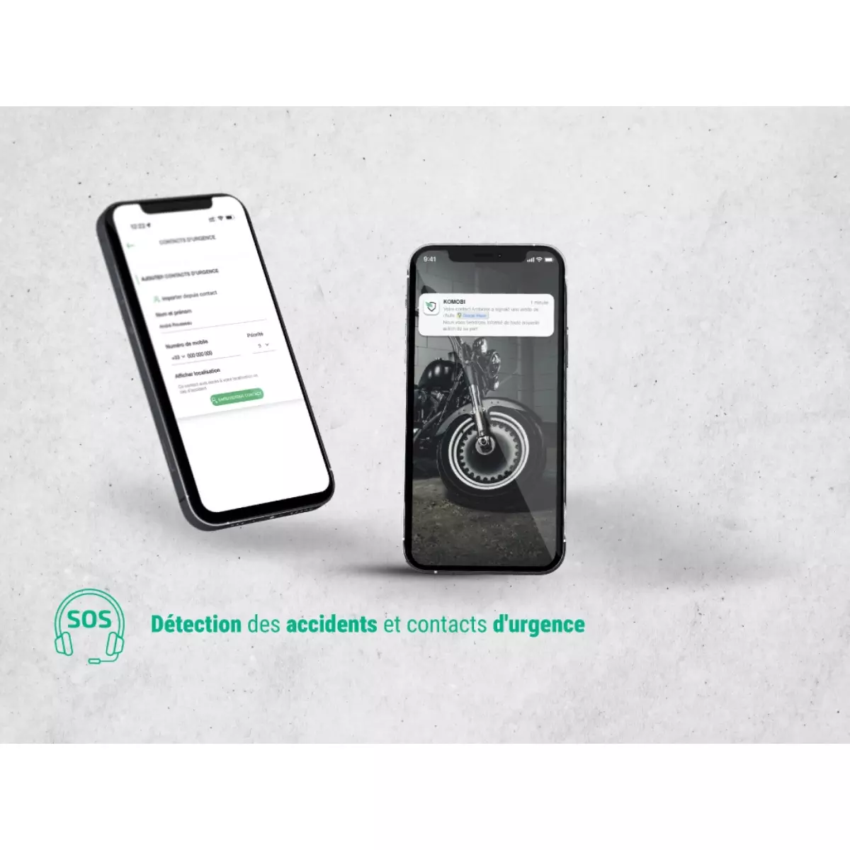- Application Komobi pour paramétrer l’alarme, suivre la moto et consulter les données