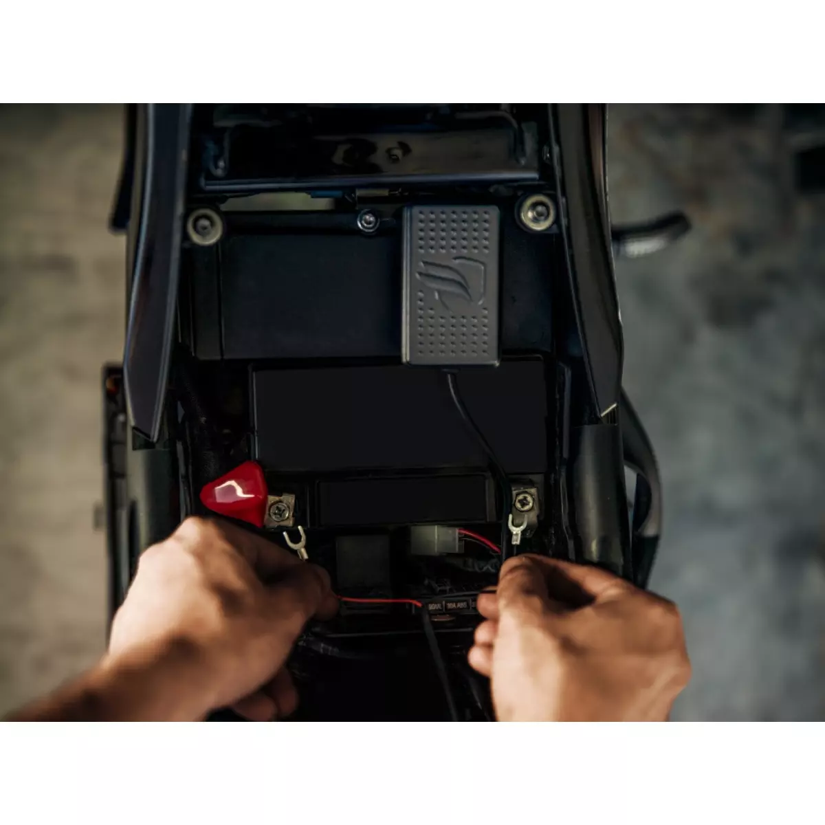 - Recharge automatique dès que la moto roule plus de 10 minutes par jour