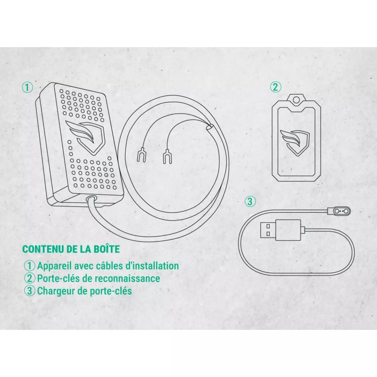 - Adhésif ultra-résistant, câbles et notice d’installation
